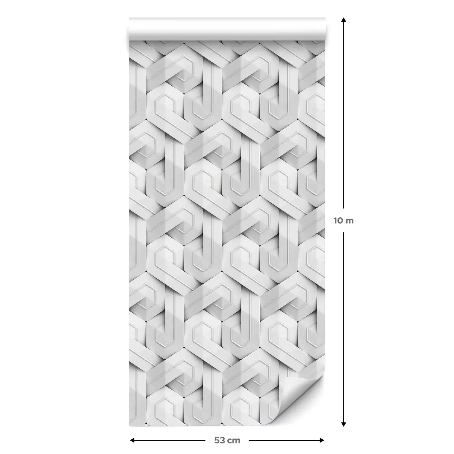 Een standaardrol behang heeft een afmeting van 0,53 m x 10 m, wat voldoende is om ongeveer 5 m² muur te bedekken.