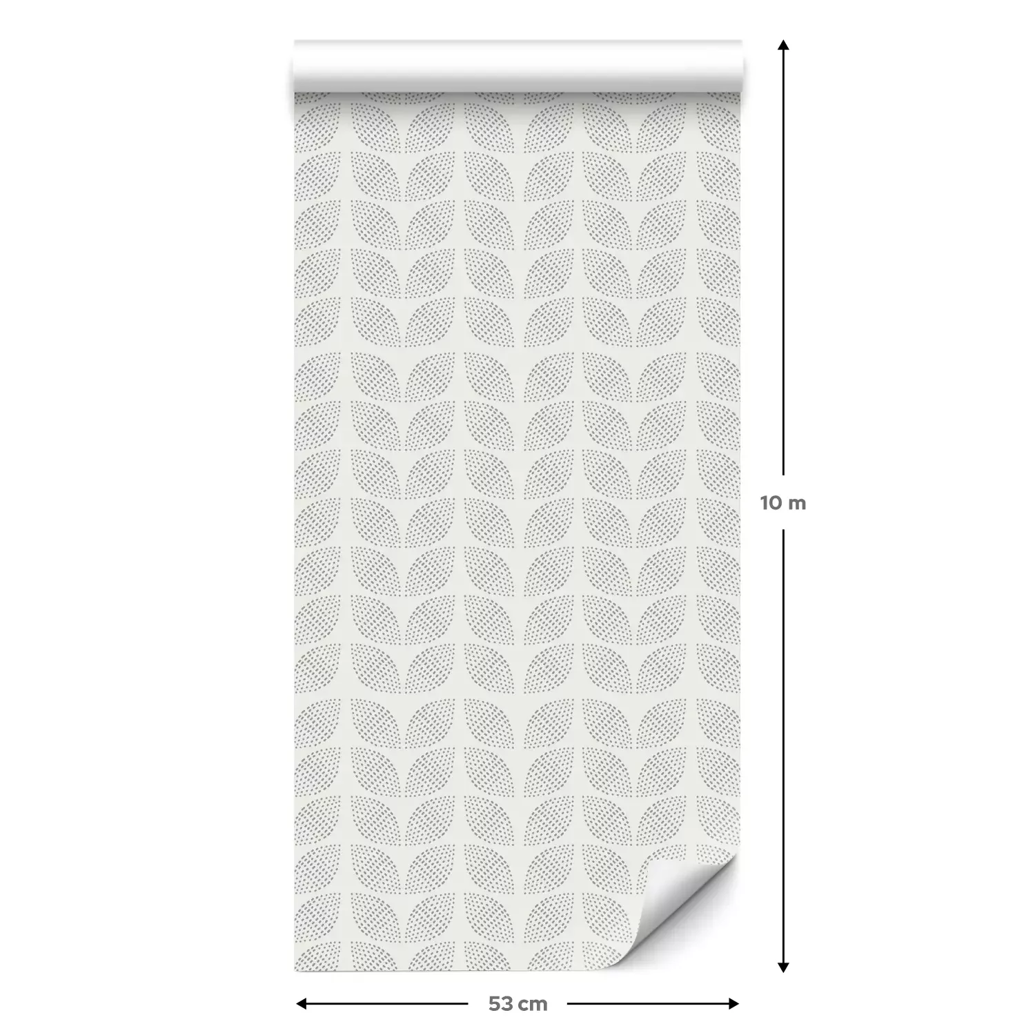 Een standaardrol behang heeft een afmeting van 0,53 m x 10 m, wat voldoende is om ongeveer 5 m² muur te bedekken.