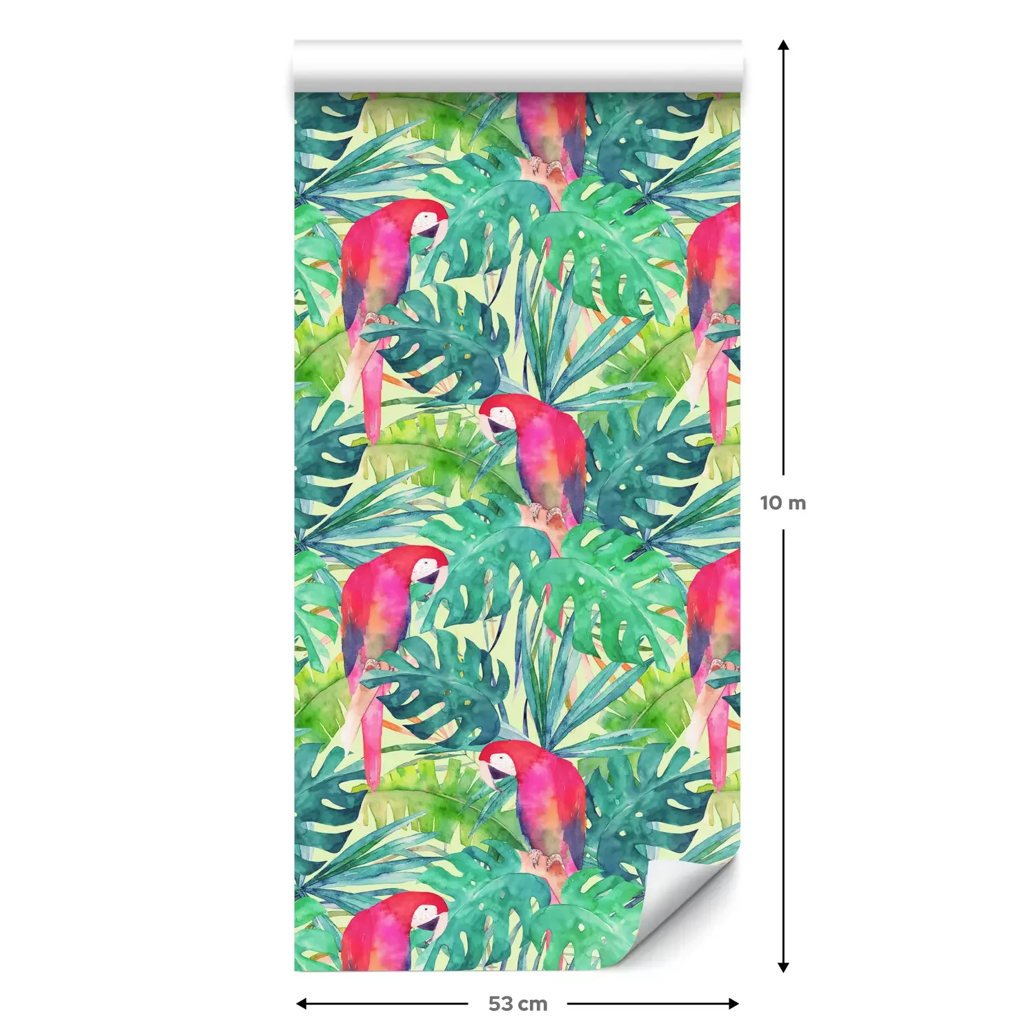 Een standaardrol behang heeft een afmeting van 0,53 m x 10 m, wat voldoende is om ongeveer 5 m² muur te bedekken.