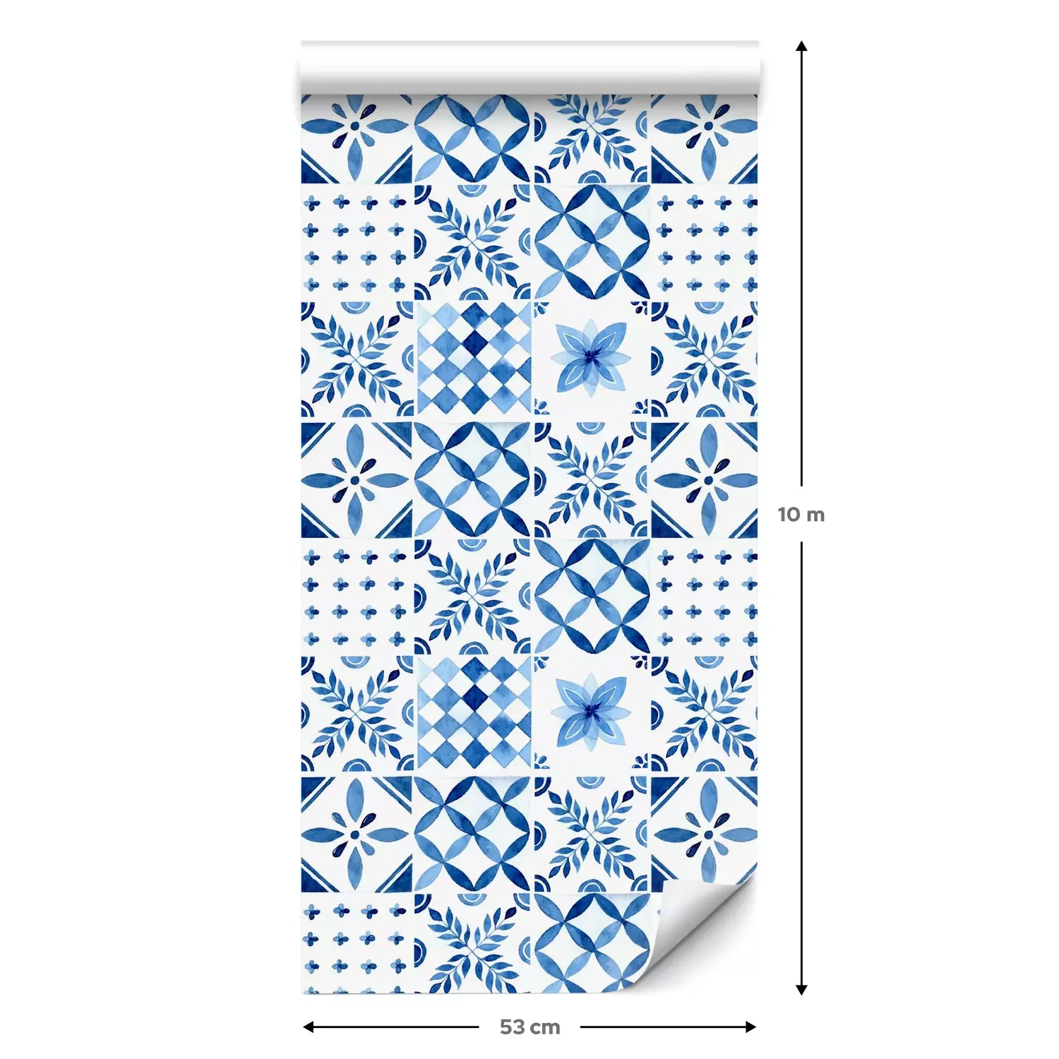 Een standaardrol behang heeft een afmeting van 0,53 m x 10 m, wat voldoende is om ongeveer 5 m² muur te bedekken.