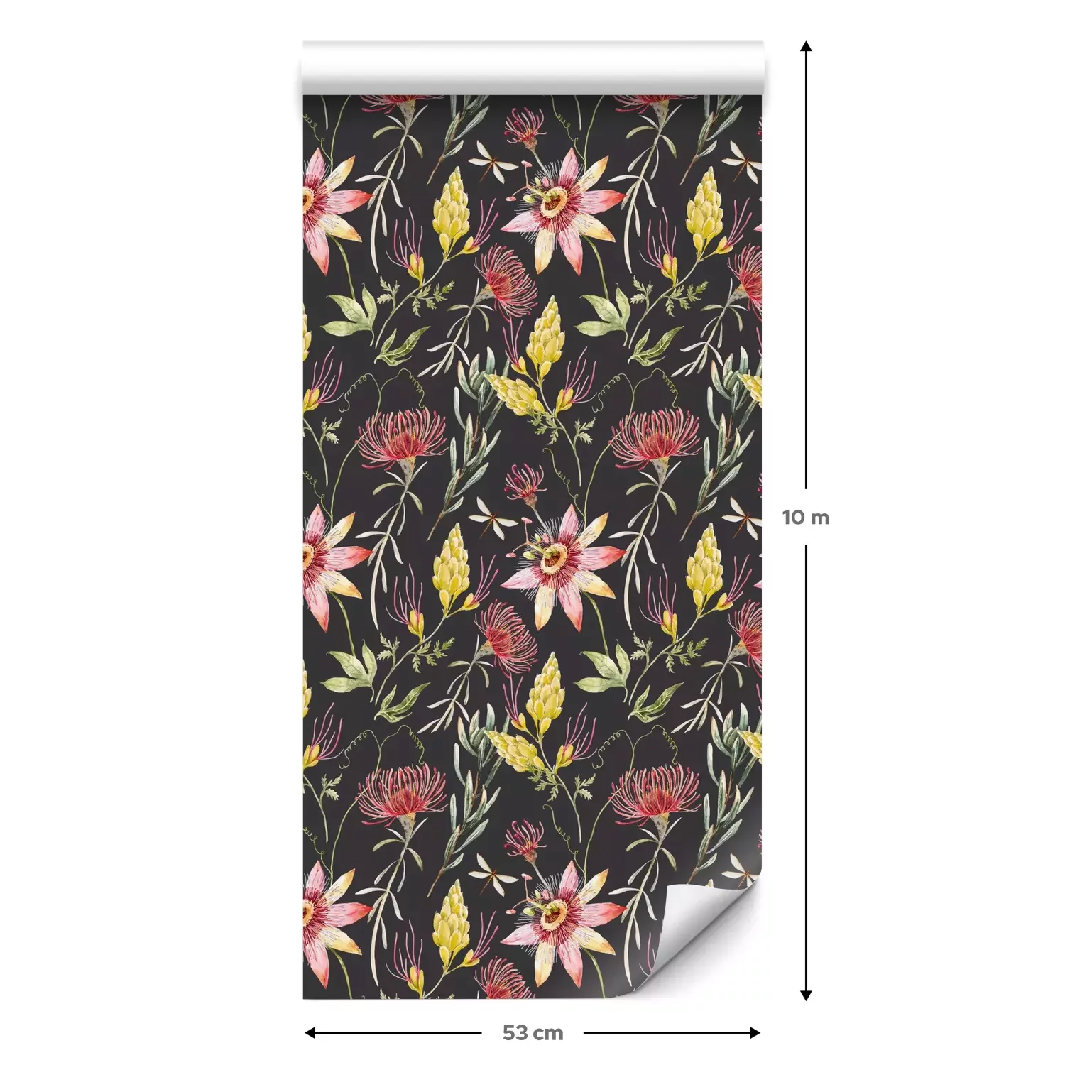 Een standaardrol behang heeft een afmeting van 0,53 m x 10 m, wat voldoende is om ongeveer 5 m² muur te bedekken.