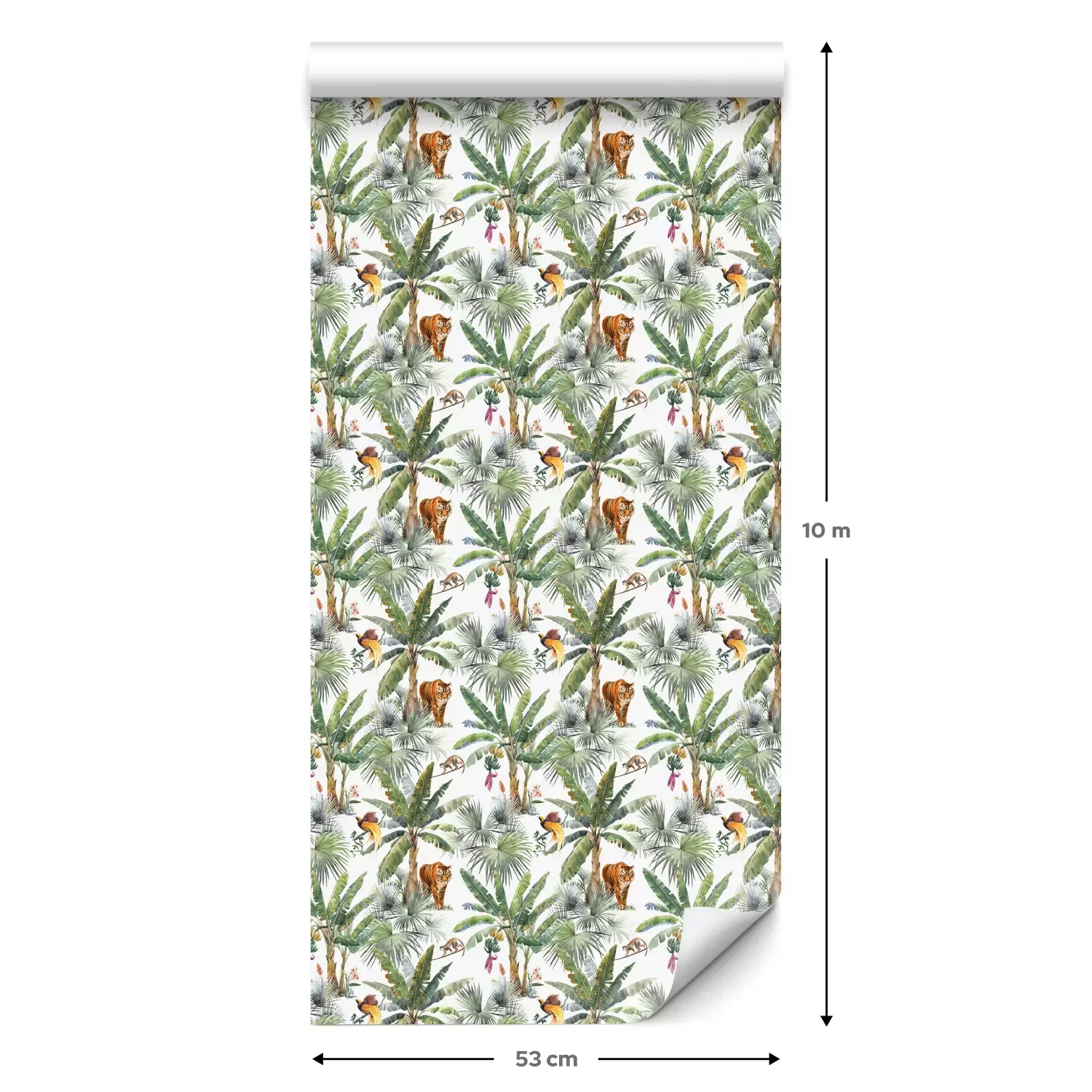Een standaardrol behang heeft een afmeting van 0,53 m x 10 m, wat voldoende is om ongeveer 5 m² muur te bedekken.