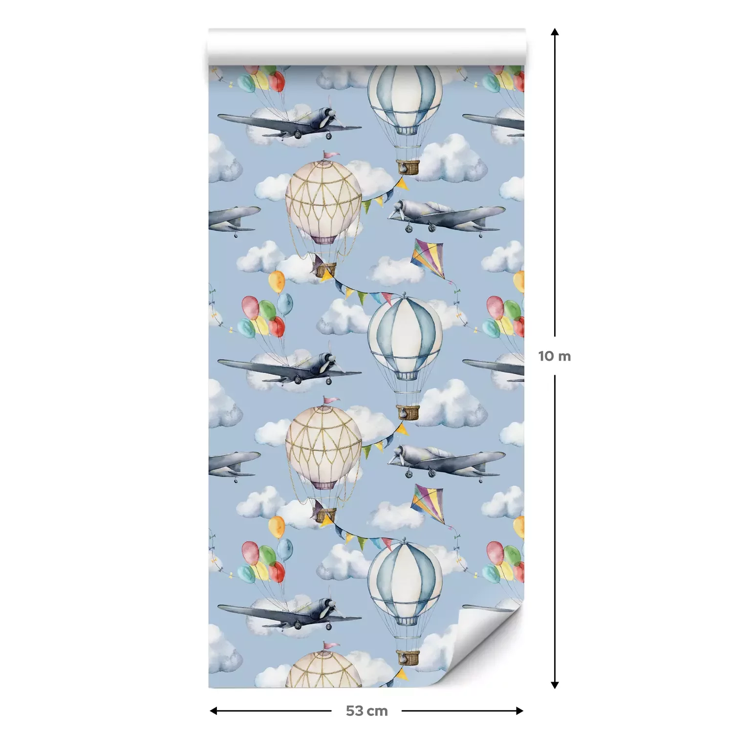 Een standaardrol behang heeft een afmeting van 0,53 m x 10 m, wat voldoende is om ongeveer 5 m² muur te bedekken.