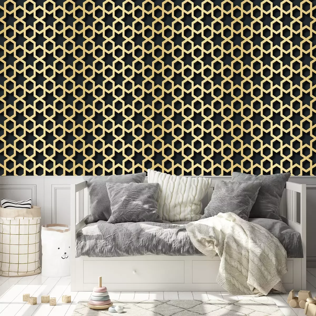 *Korting is niet van toepassing op lijmen, accessoires en cadeaubonnen.Het behang is gemaakt van hoogwaardig vliesmateriaal – duurzaam, stevig en eenvoudig aan te brengen. Op de productpagina vind je een gebruiksvriendelijke calculator die automatisch het aantal benodigde rollen berekent, zodat het winkelen nog makkelijker wordt. Het behang heeft een herhalend patroon dat we aanbieden in drie dichtheidsvarianten – normaal, gemiddeld en groot – waardoor je het motief perfect kunt afstemmen op de grootte van de ruimte. In onze winkel vind je duizenden ontwerpen, allemaal overzichtelijk ingedeeld in praktische categorieën.