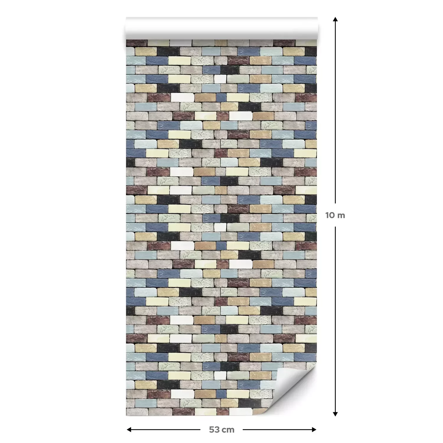 Een standaardrol behang heeft een afmeting van 0,53 m x 10 m, wat voldoende is om ongeveer 5 m² muur te bedekken.