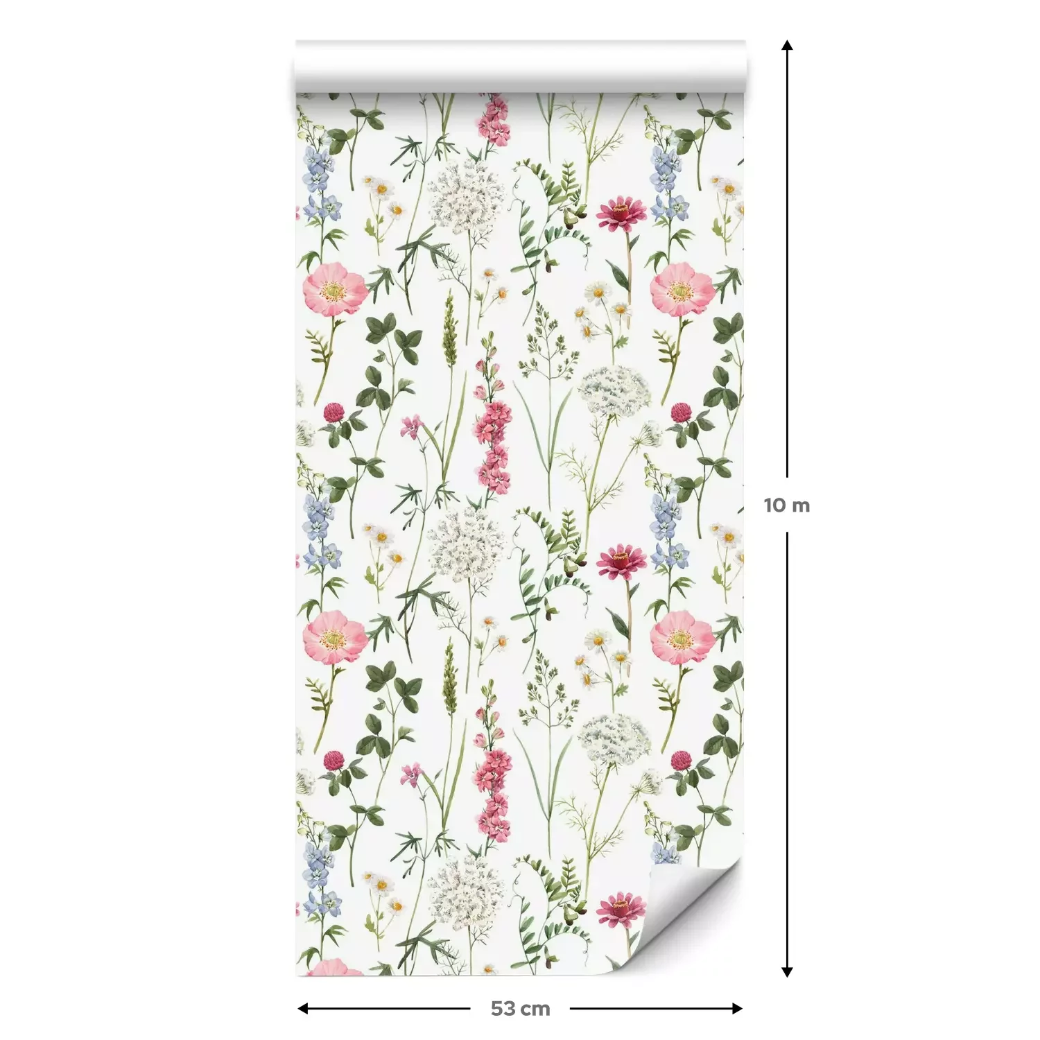 Een standaardrol behang heeft een afmeting van 0,53 m x 10 m, wat voldoende is om ongeveer 5 m² muur te bedekken.