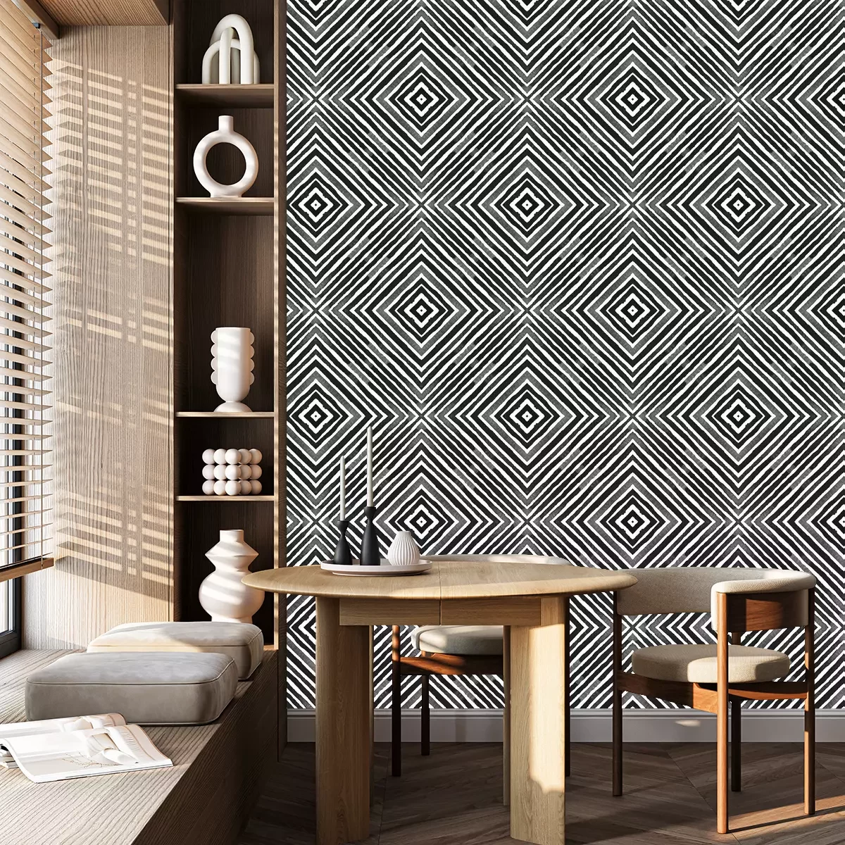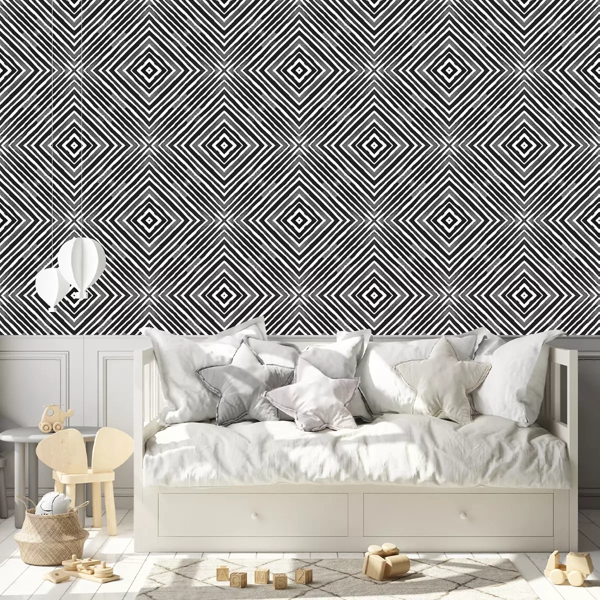 *Korting is niet van toepassing op lijmen, accessoires en cadeaubonnen.Het behang is gemaakt van hoogwaardig vliesmateriaal – duurzaam, stevig en eenvoudig aan te brengen. Op de productpagina vind je een gebruiksvriendelijke calculator die automatisch het aantal benodigde rollen berekent, zodat het winkelen nog makkelijker wordt. Het behang heeft een herhalend patroon dat we aanbieden in drie dichtheidsvarianten – normaal, gemiddeld en groot – waardoor je het motief perfect kunt afstemmen op de grootte van de ruimte. In onze winkel vind je duizenden ontwerpen, allemaal overzichtelijk ingedeeld in praktische categorieën.