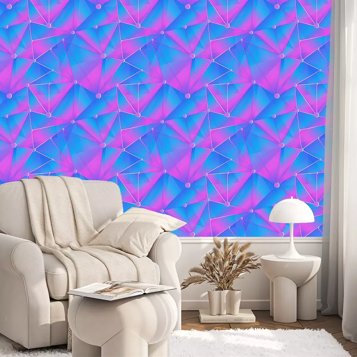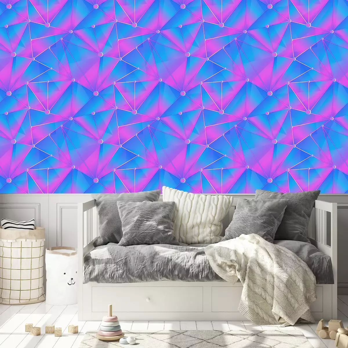 Monochroom driehoek patroonGeometrisch behang is een dynamisch patroon van driehoeken van verschillende maten en vormen die een indrukwekkende compositie vormen. De hoofdkleuren zijn een combinatie van roze en blauw, die het subtiliteit geven, maar tegelijkertijd energie. Bovendien lijkt het te glanzen en creëert het de illusie van driedimensionale ruimte, waardoor de ruimte een bijzonder karakter krijgt. Dankzij zijn dynamische en moderne esthetiek kan geometrische behang patronen worden gebruikt in verschillende interieurs, zowel in woningen als in openbare ruimtes. Het behang met geometrisch patroon past perfect bij moderne en minimalistische arrangementen, maar ook uitstekend bij andere stijlen zoals Scandinavisch, eclectisch of industrieel. Het is een veelzijdig patroon dat kan worden aangepast aan verschillende contexten. In combinatie met meubels in neutrale kleuren zoals wit, grijs of zwart, wordt het behang driehoeken het middelpunt van de inrichting, trekt het de aandacht en geeft het de ruimte een opvallend karakter. Je kunt ook accenten toevoegen in felle kleuren zoals geel of oranje om energie toe te voegen en de ruimte levendiger te maken. Een van de belangrijkste voordelen van behang driehoeken is het vermogen om de ruimte te transformeren. Dankzij de dynamische structuur en kleur kan het patroon diepte en ruimtelijkheid toevoegen, zelfs in kleine ruimtes. Bovendien geeft de glanzende uitstraling van het behang geometrisch de ruimte elegantie en een luxueus karakter. Het patroon is ook perfect om kleine onvolkomenheden in de muur te verbergen en deze een uniforme uitstraling te geven. Geometrisch behang is een uitstekende keuze voor mensen die gedurfde en innovatieve oplossingen zoeken voor hun interieur. De opvallende kleurencombinatie creëert een unieke uitstraling die karakter en een zekere pittigheid toevoegt aan elke ruimte waarin het wordt geplaatst. Of je nu de voorkeur geeft aan moderne, minimalistische arrangementen of meer eclectische en gedurfde combinaties, dit behang geometrisch zal zeker aan je verwachtingen voldoen en de ruimte op een buitengewone manier nieuw leven inblazen.