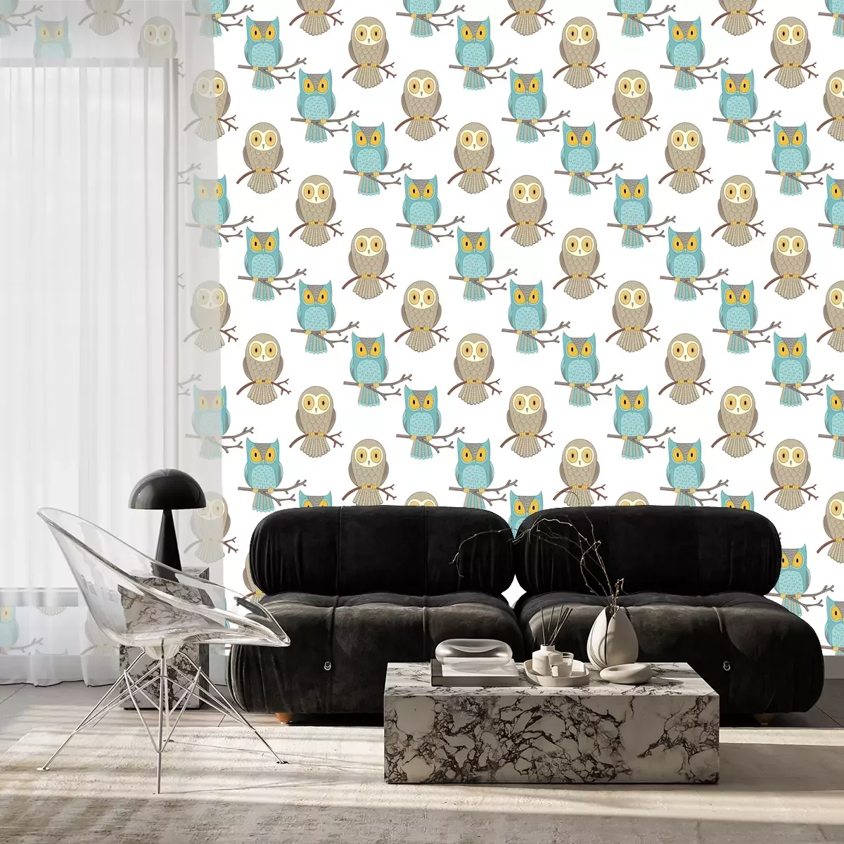 Getekende zwart-witte uilenProbleemloze bezorging verzorgd door vertrouwde vervoerders