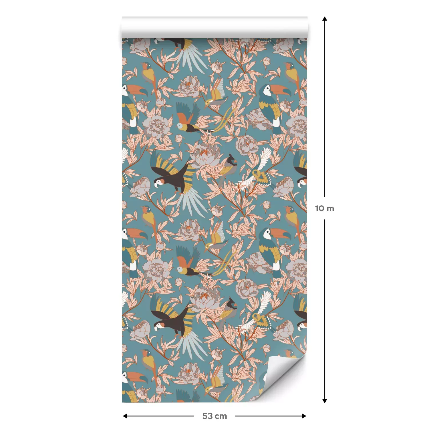Een standaardrol behang heeft een afmeting van 0,53 m x 10 m, wat voldoende is om ongeveer 5 m² muur te bedekken.