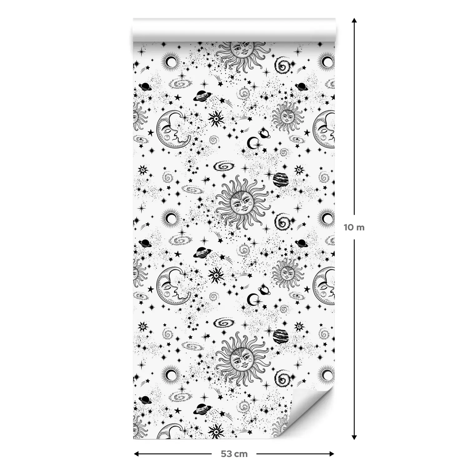 Een standaardrol behang heeft een afmeting van 0,53 m x 10 m, wat voldoende is om ongeveer 5 m² muur te bedekken.