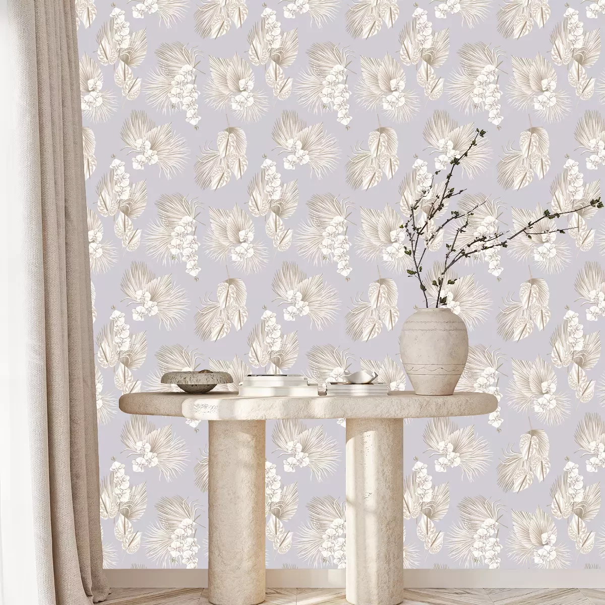 Exotische bomen in grijsFotobehang