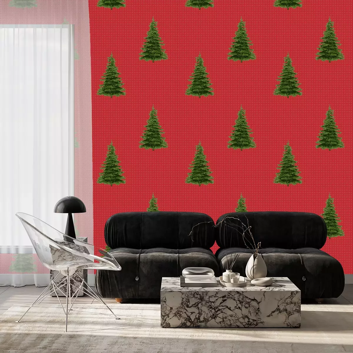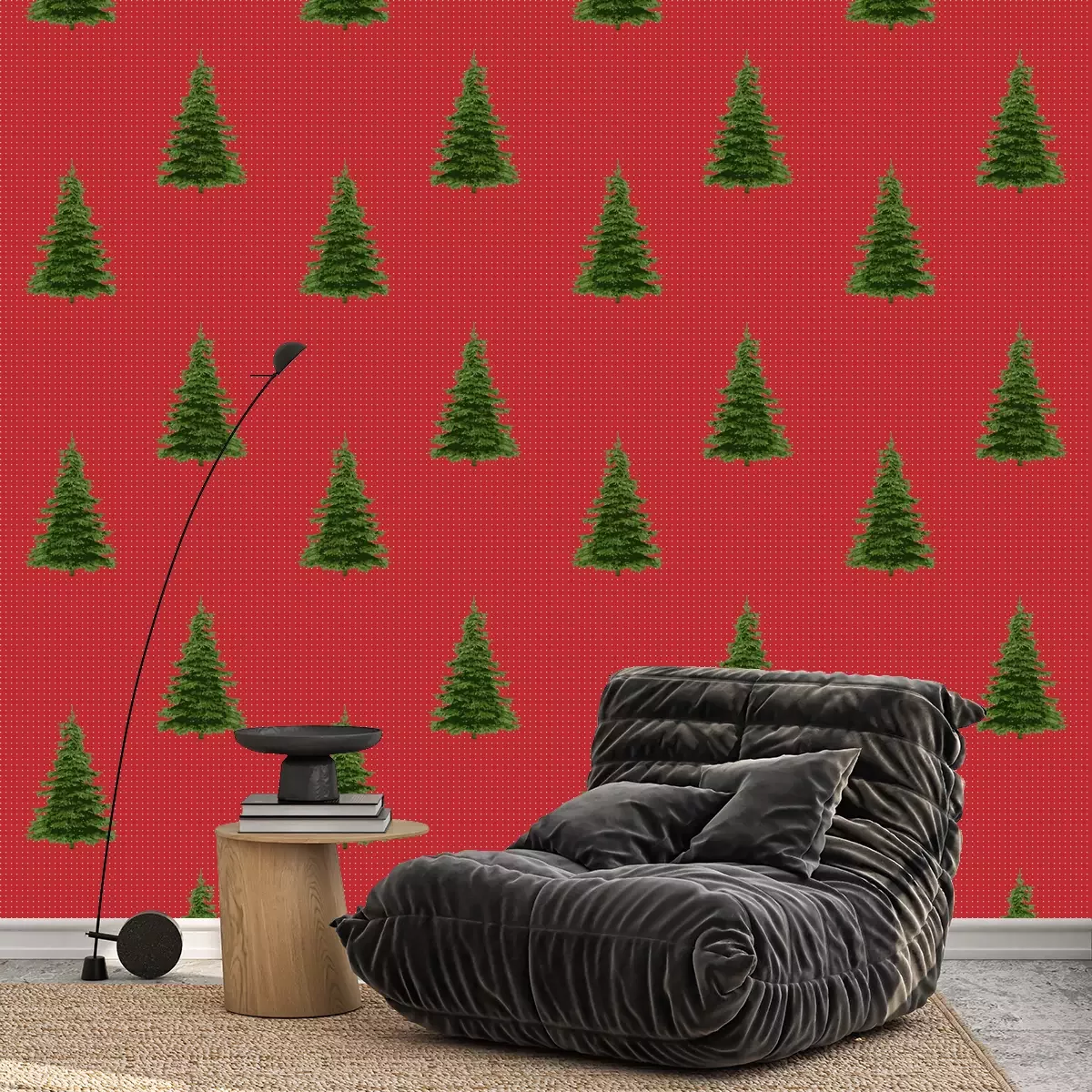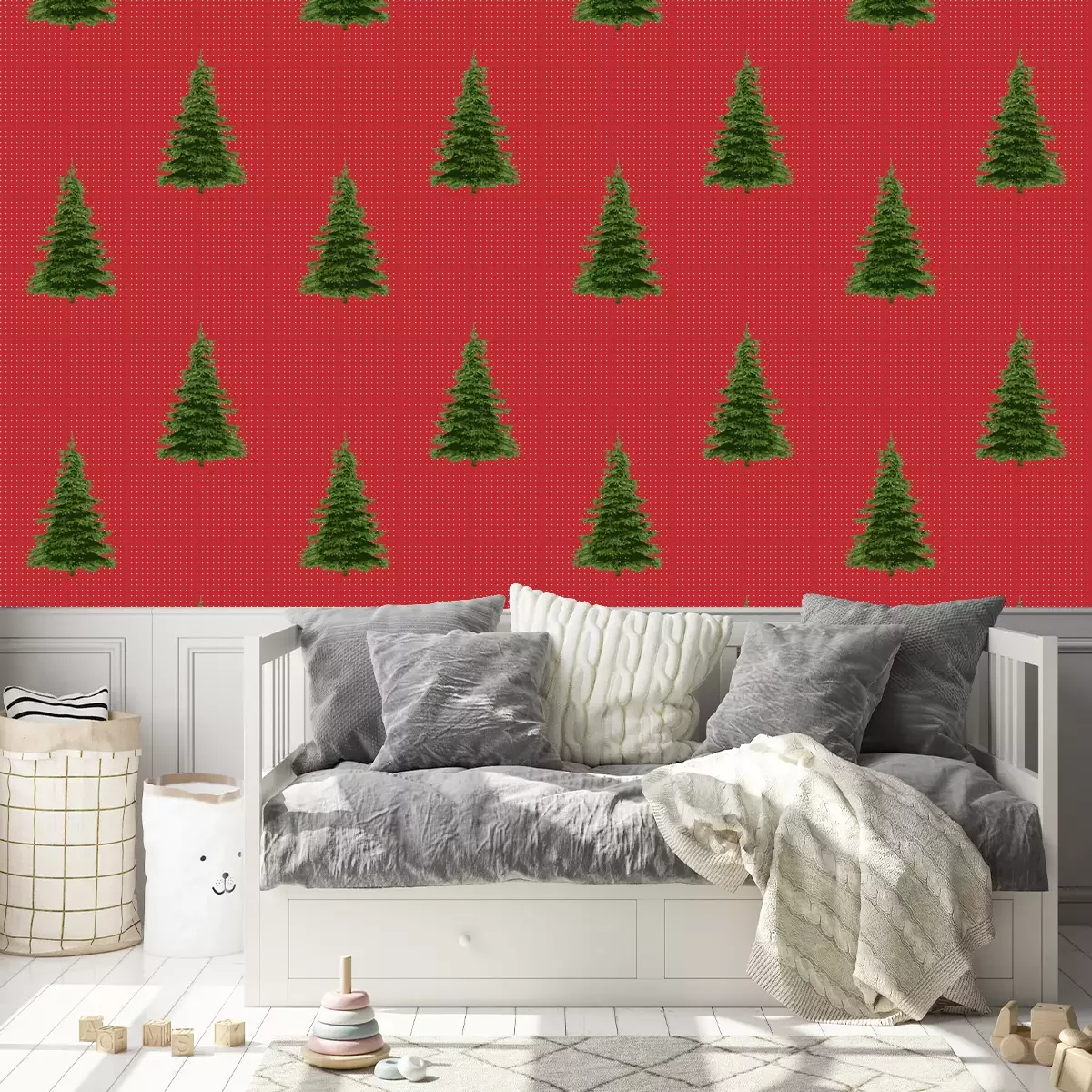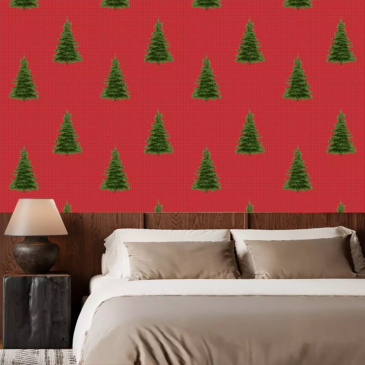Kerstbomen bedekt met sneeuwBehang