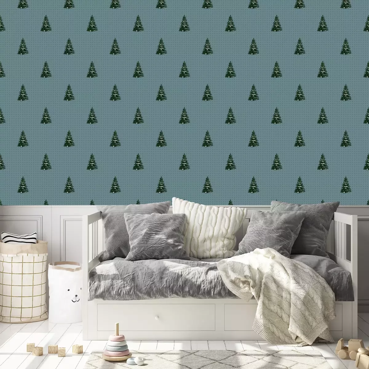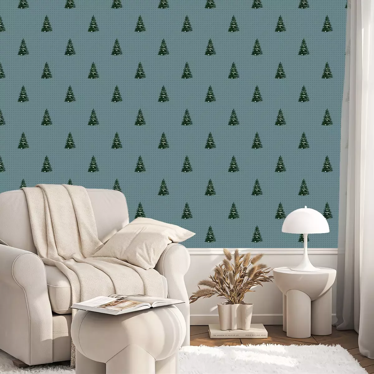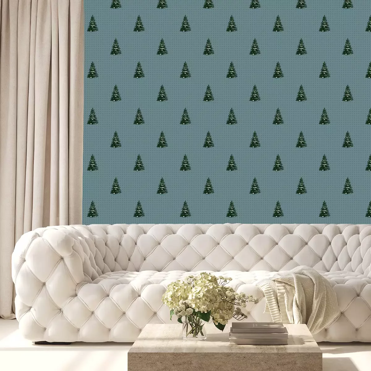 Kerstbomen bedekt met sneeuwBehang
