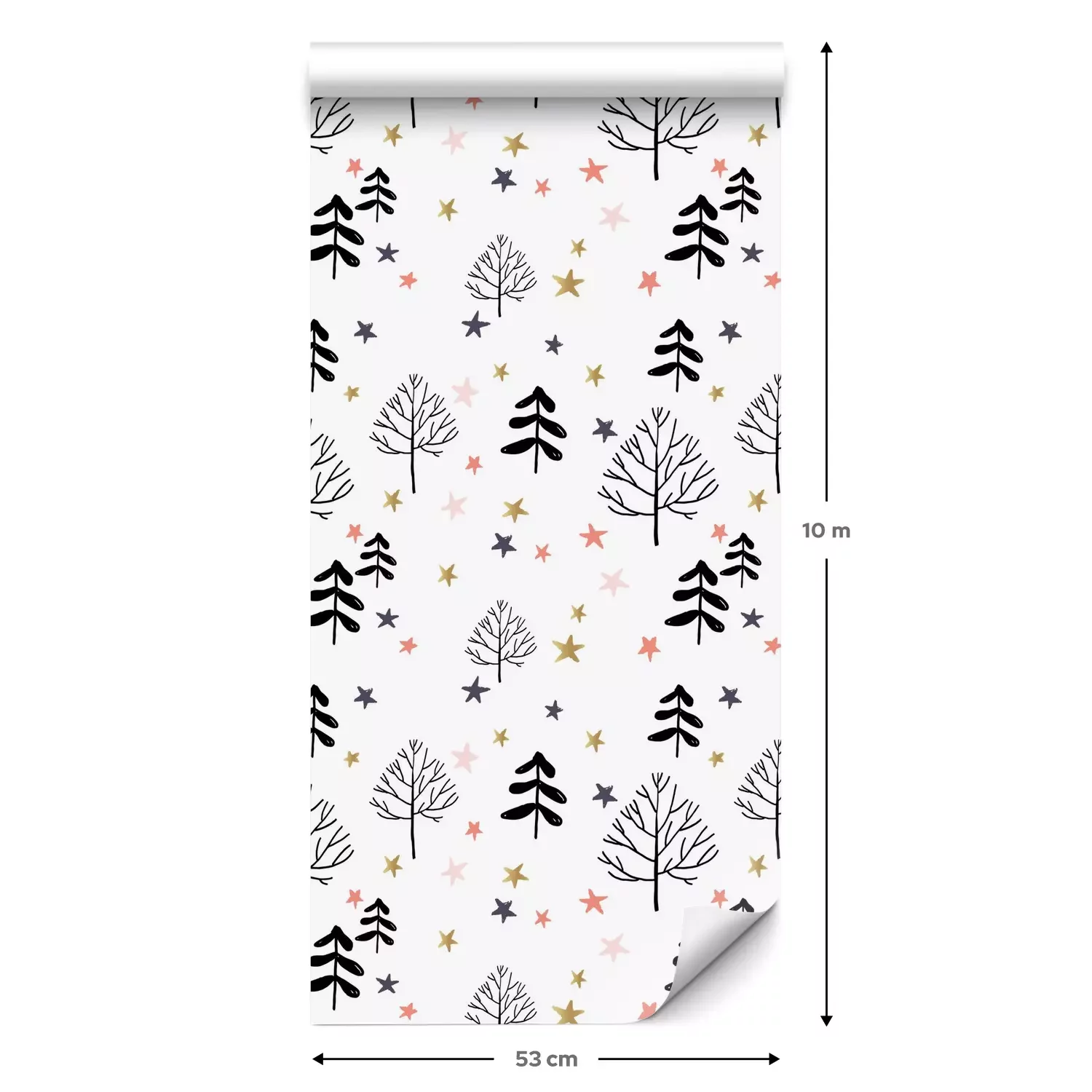 Een standaardrol behang heeft een afmeting van 0,53 m x 10 m, wat voldoende is om ongeveer 5 m² muur te bedekken.