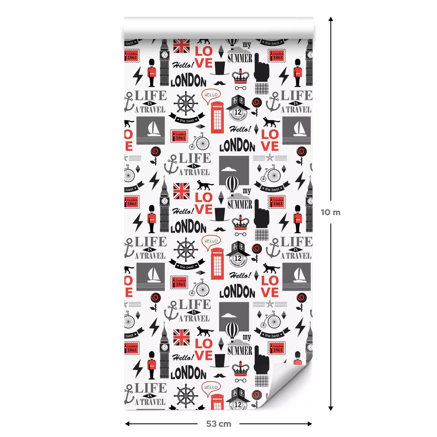 Een standaardrol behang heeft een afmeting van 0,53 m x 10 m, wat voldoende is om ongeveer 5 m² muur te bedekken.