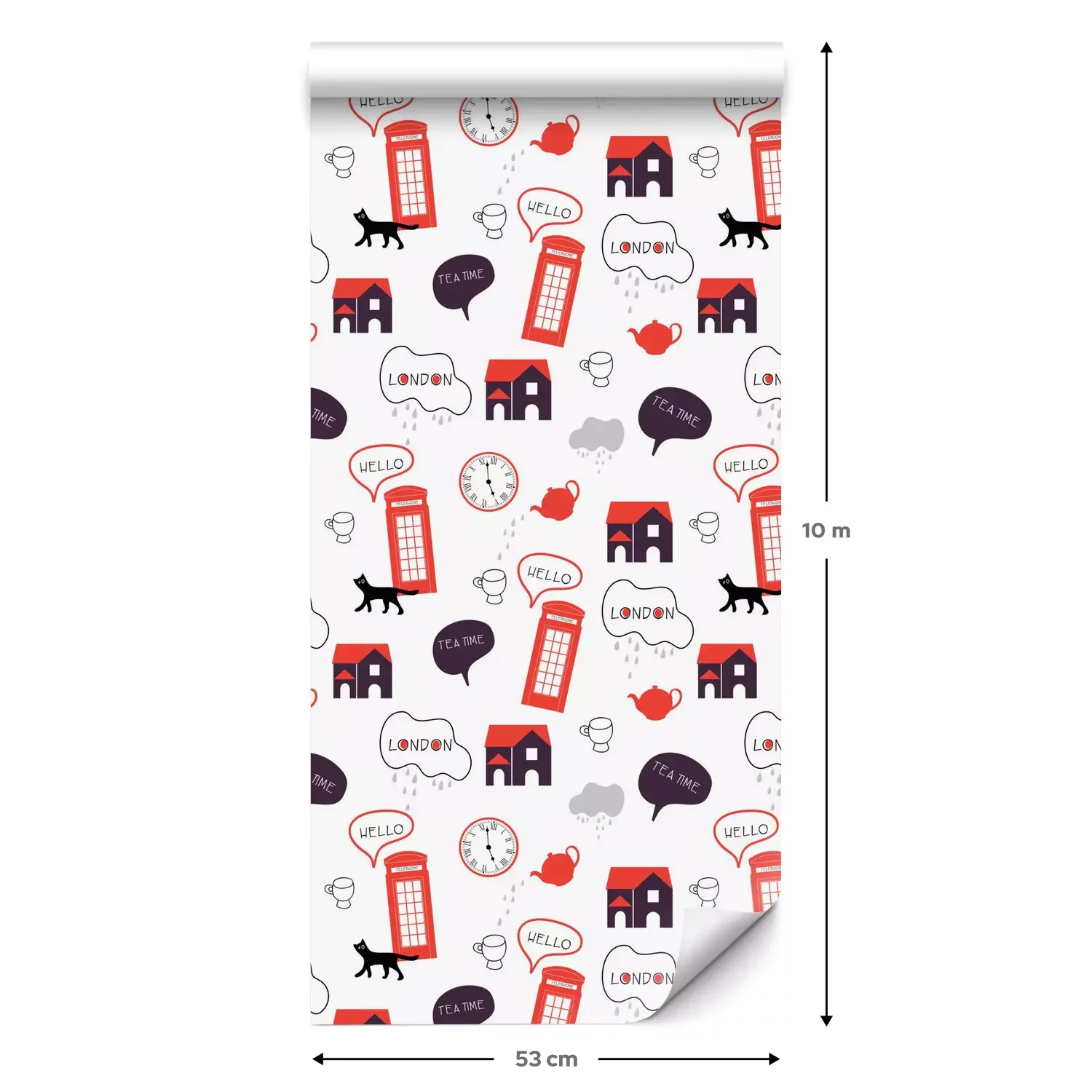 Een standaardrol behang heeft een afmeting van 0,53 m x 10 m, wat voldoende is om ongeveer 5 m² muur te bedekken.