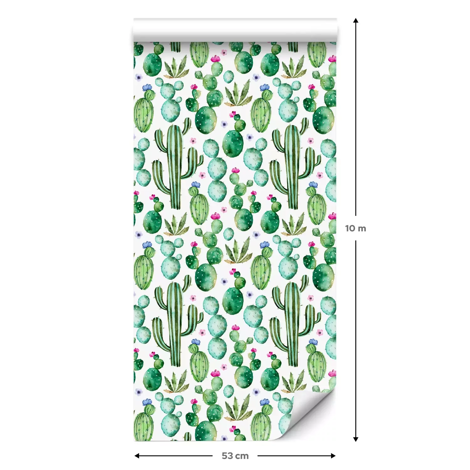 Een standaardrol behang heeft een afmeting van 0,53 m x 10 m, wat voldoende is om ongeveer 5 m² muur te bedekken.
