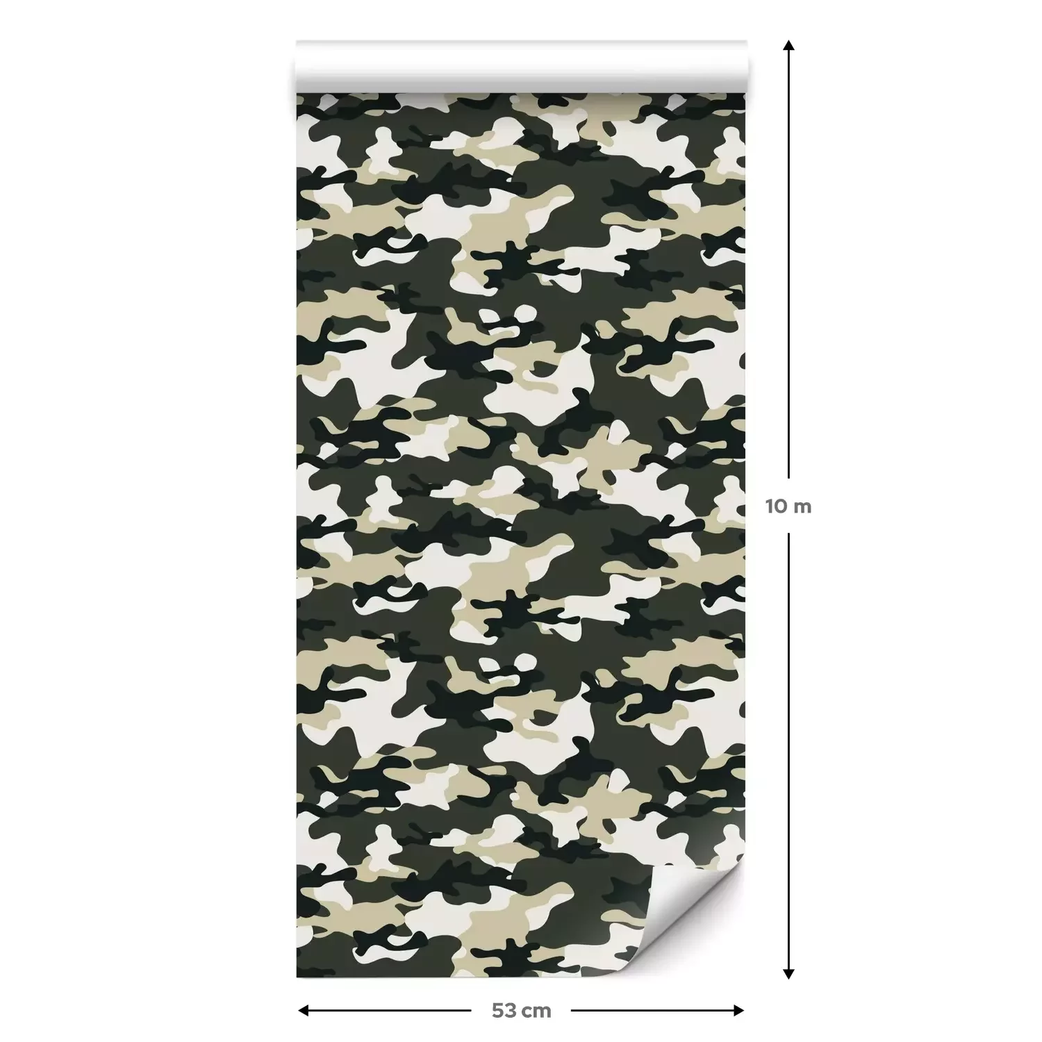 Een standaardrol behang heeft een afmeting van 0,53 m x 10 m, wat voldoende is om ongeveer 5 m² muur te bedekken.