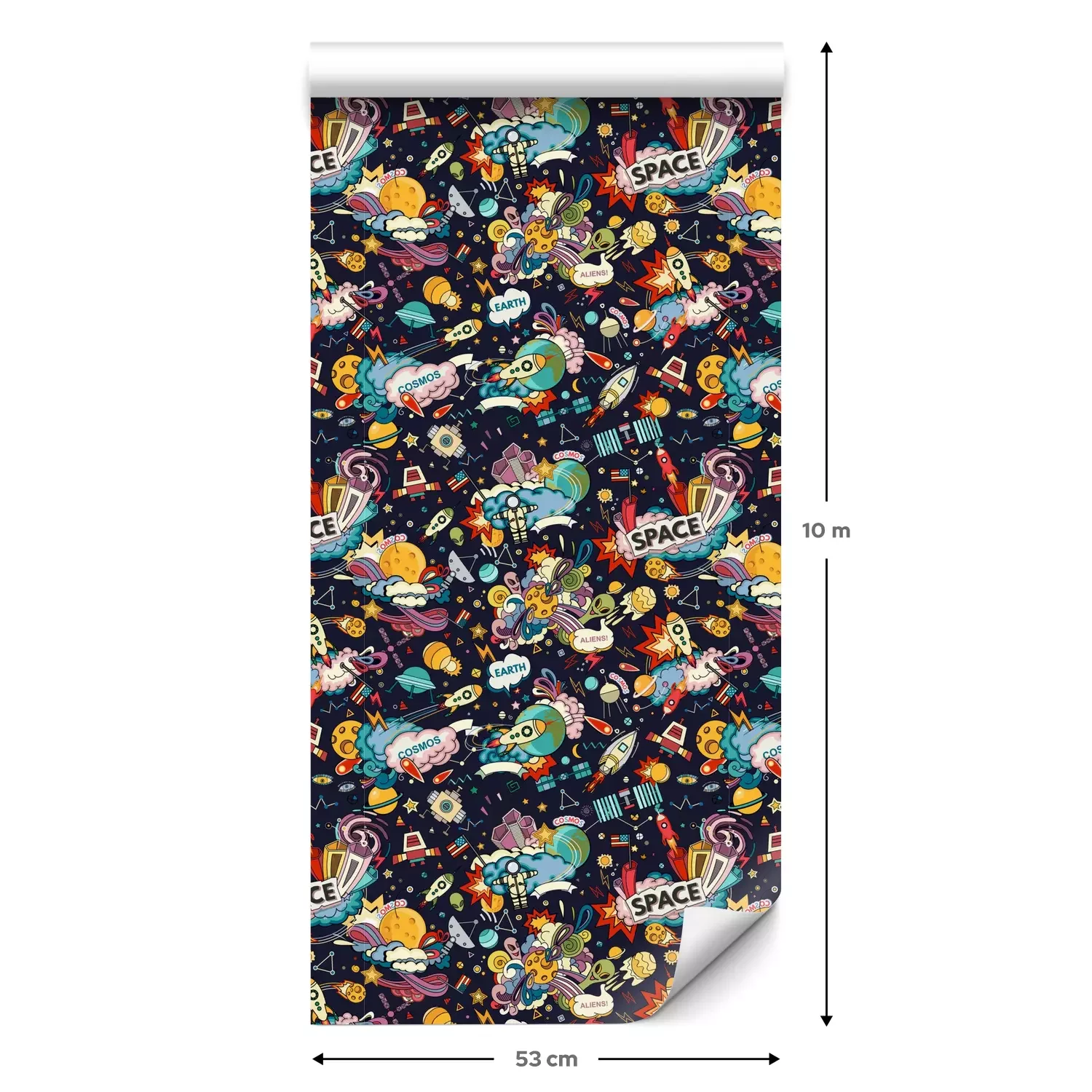 Een standaardrol behang heeft een afmeting van 0,53 m x 10 m, wat voldoende is om ongeveer 5 m² muur te bedekken.
