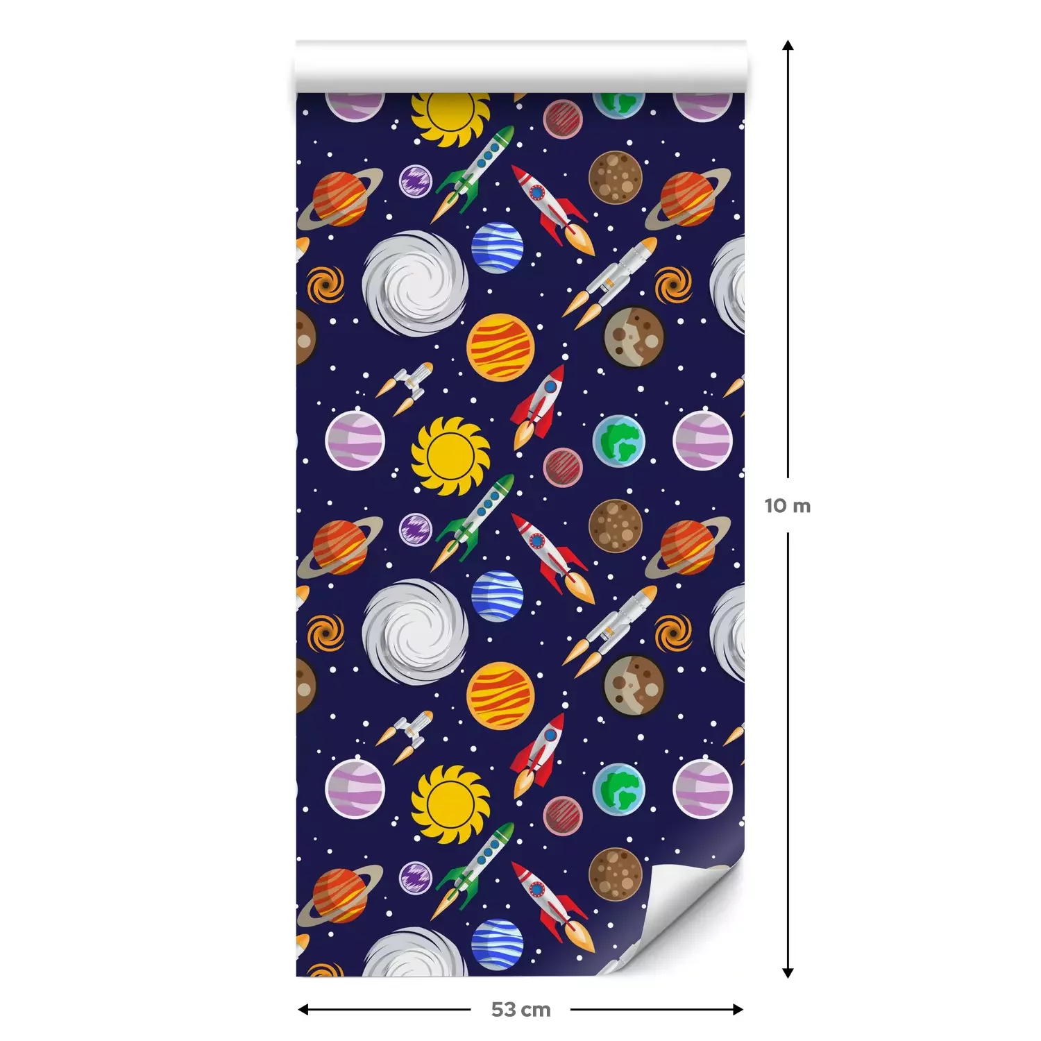Een standaardrol behang heeft een afmeting van 0,53 m x 10 m, wat voldoende is om ongeveer 5 m² muur te bedekken.