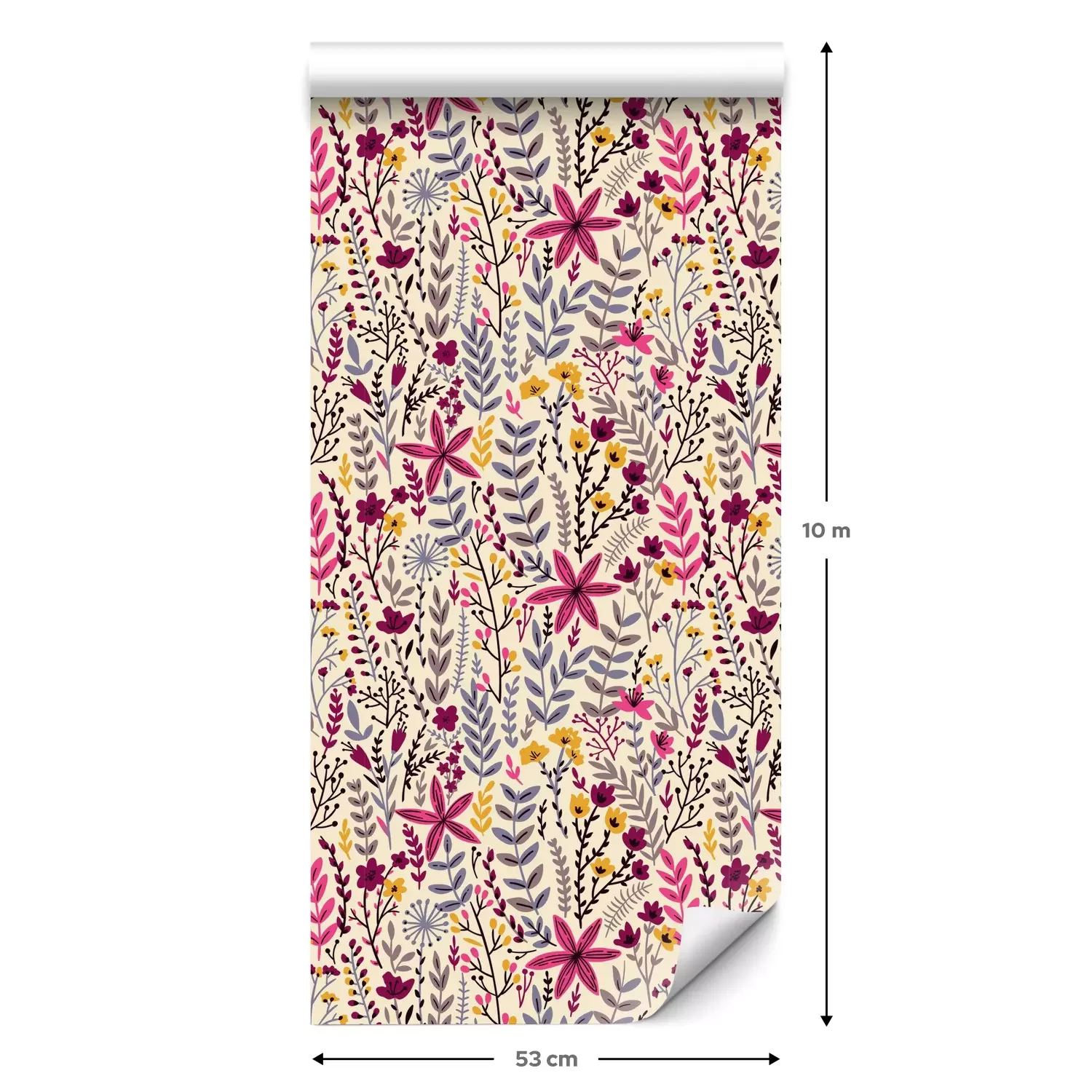 Een standaardrol behang heeft een afmeting van 0,53 m x 10 m, wat voldoende is om ongeveer 5 m² muur te bedekken.