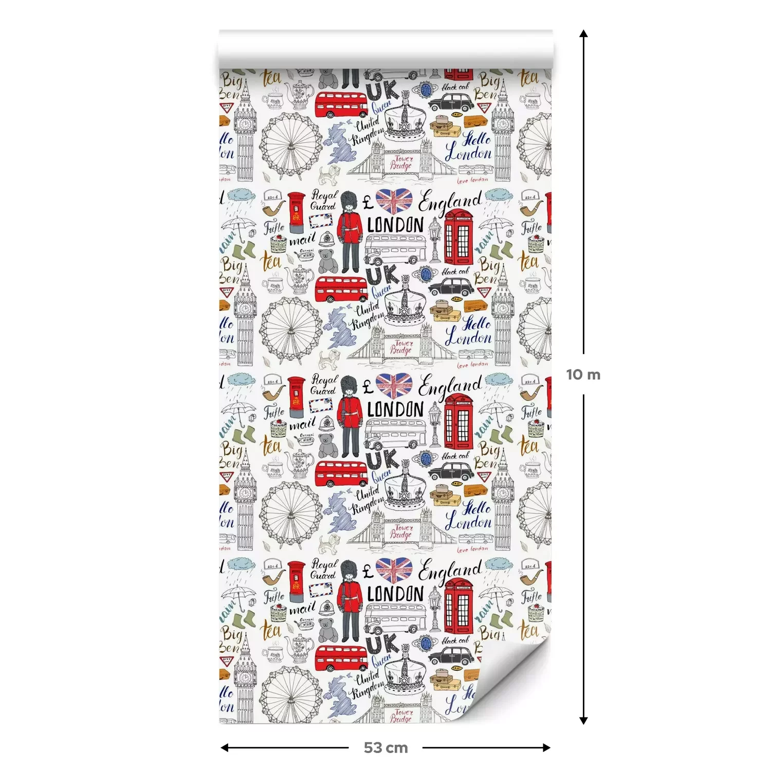 Een standaardrol behang heeft een afmeting van 0,53 m x 10 m, wat voldoende is om ongeveer 5 m² muur te bedekken.
