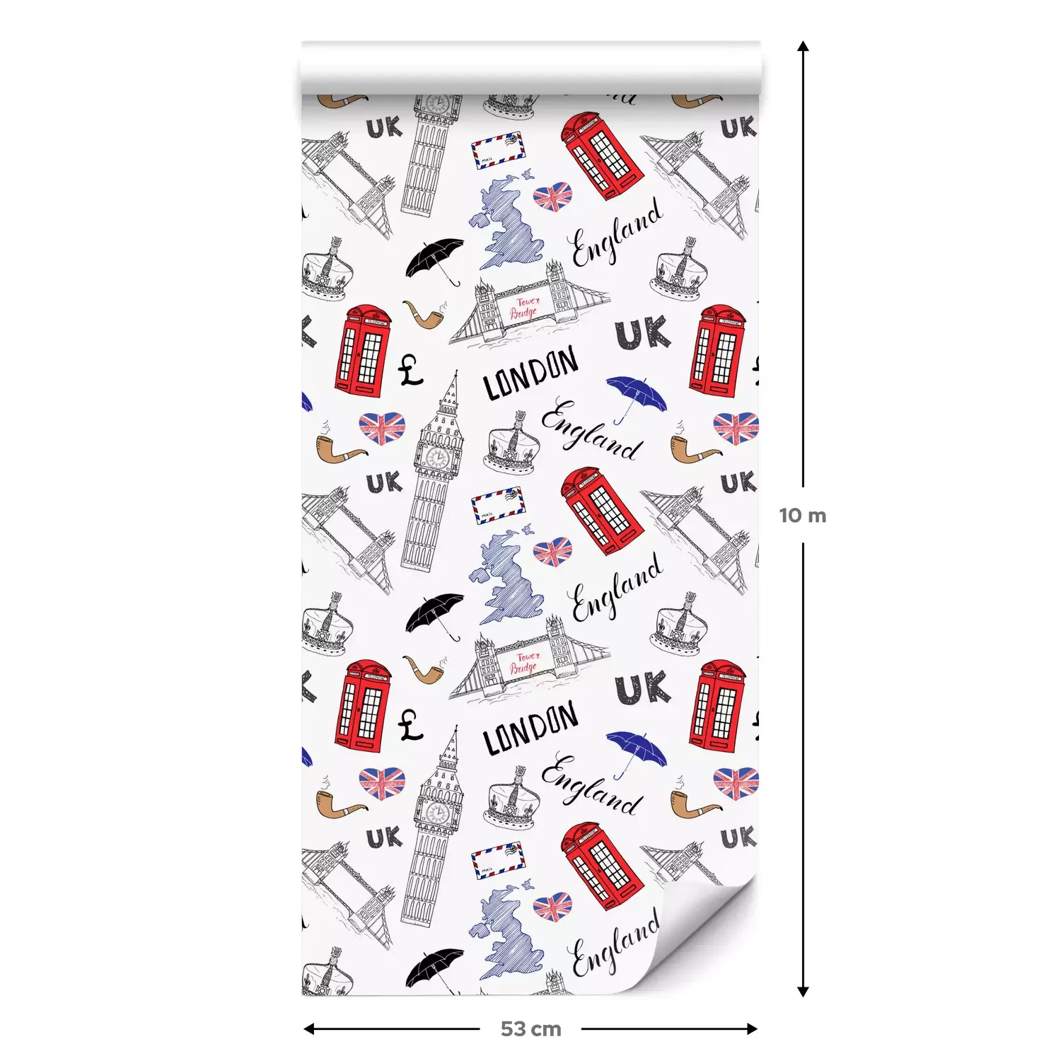 Een standaardrol behang heeft een afmeting van 0,53 m x 10 m, wat voldoende is om ongeveer 5 m² muur te bedekken.