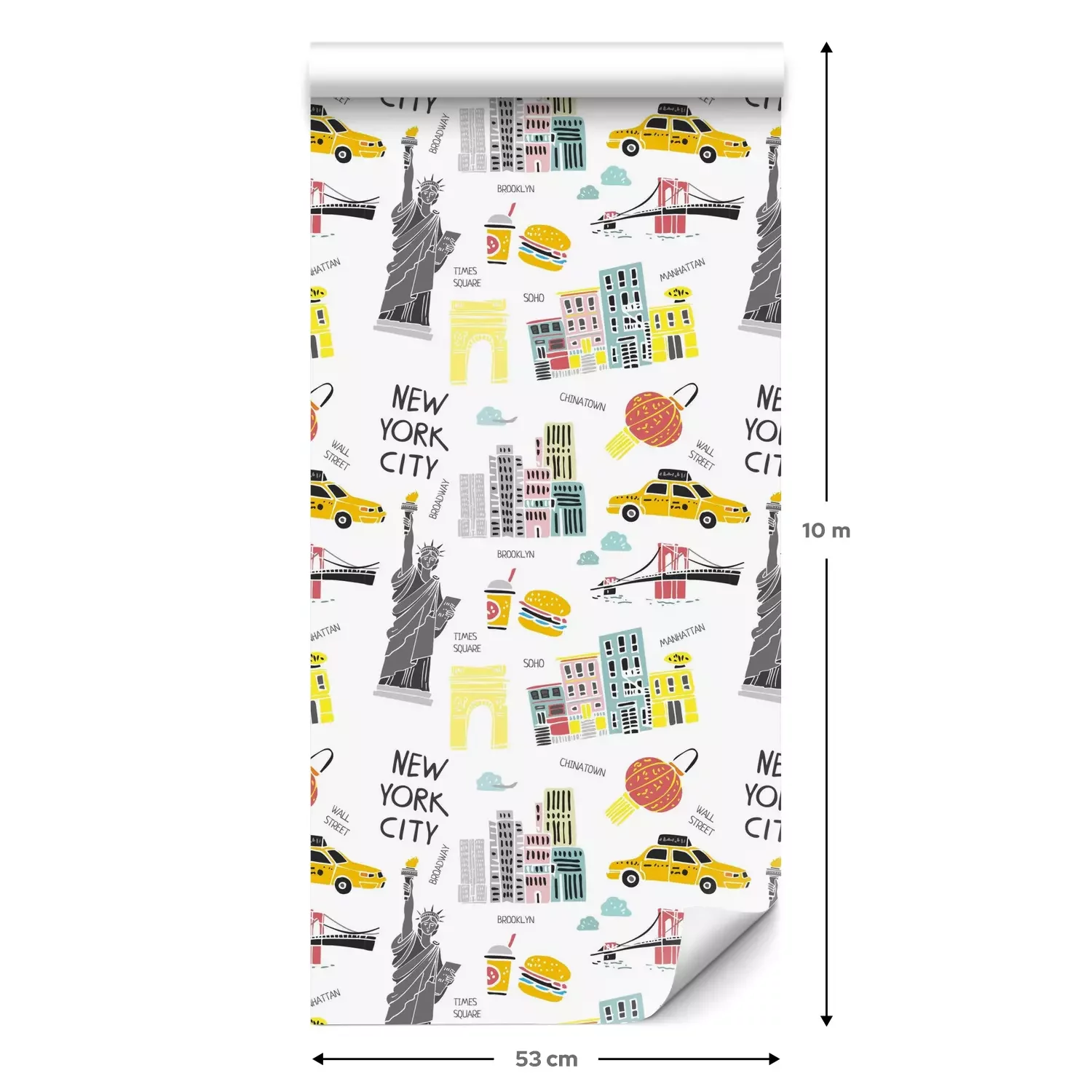 Een standaardrol behang heeft een afmeting van 0,53 m x 10 m, wat voldoende is om ongeveer 5 m² muur te bedekken.