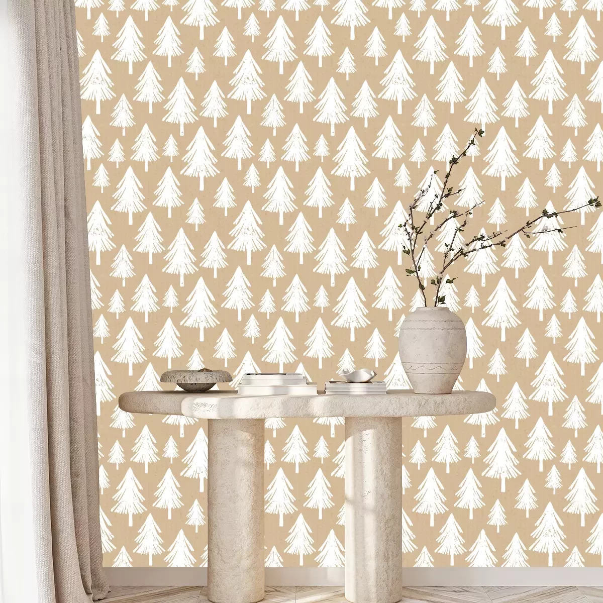 Winterpatroon met kerstbomenBehang
