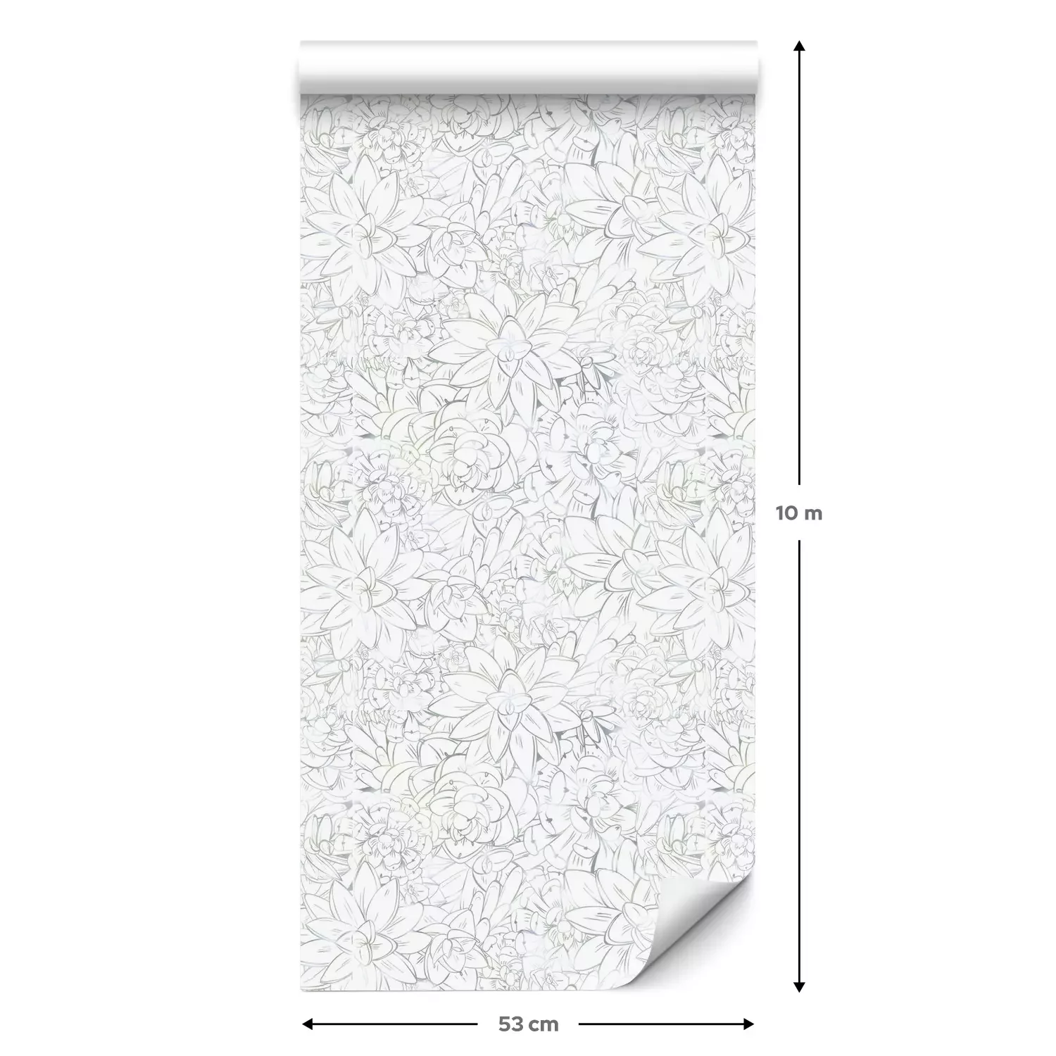 Een standaardrol behang heeft een afmeting van 0,53 m x 10 m, wat voldoende is om ongeveer 5 m² muur te bedekken.