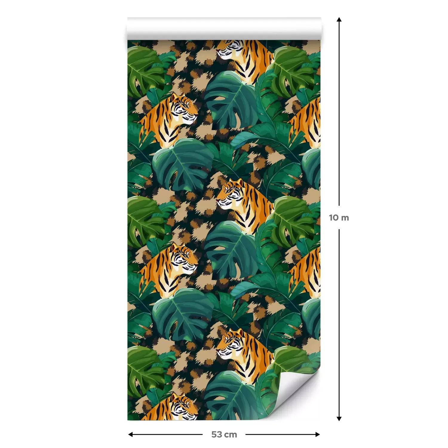 Een standaardrol behang heeft een afmeting van 0,53 m x 10 m, wat voldoende is om ongeveer 5 m² muur te bedekken.