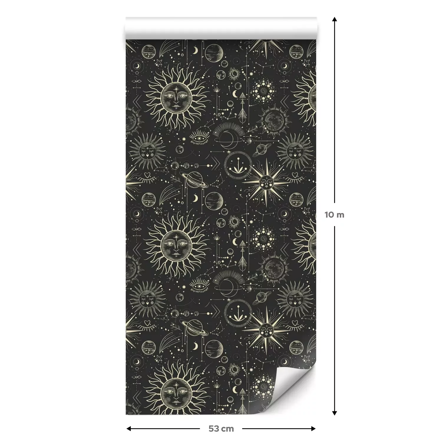 Een standaardrol behang heeft een afmeting van 0,53 m x 10 m, wat voldoende is om ongeveer 5 m² muur te bedekken.