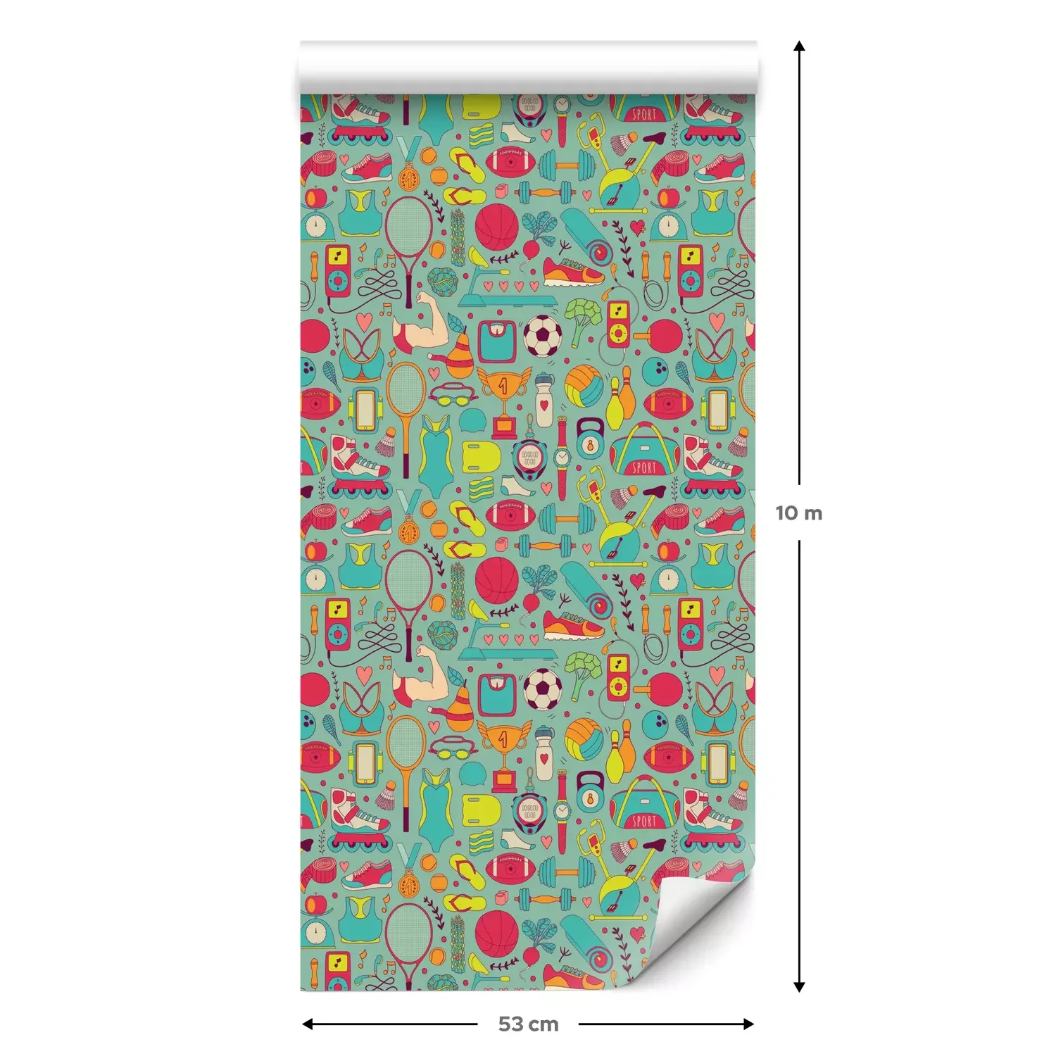 Een standaardrol behang heeft een afmeting van 0,53 m x 10 m, wat voldoende is om ongeveer 5 m² muur te bedekken.