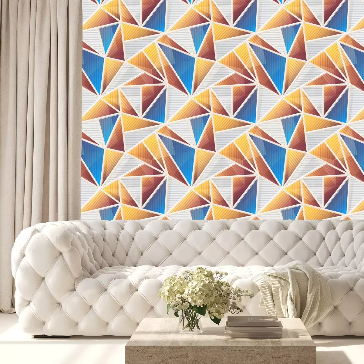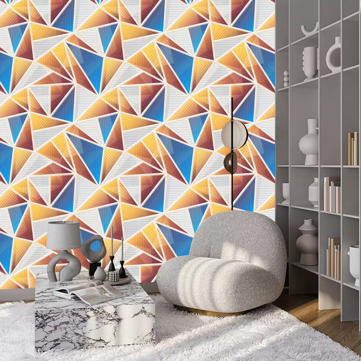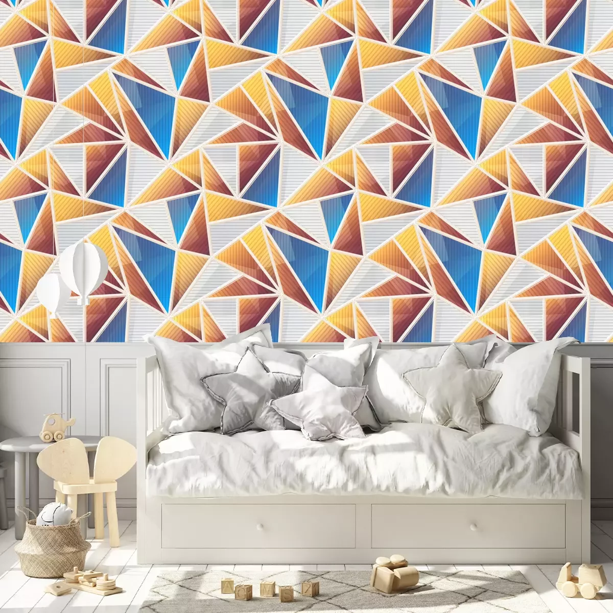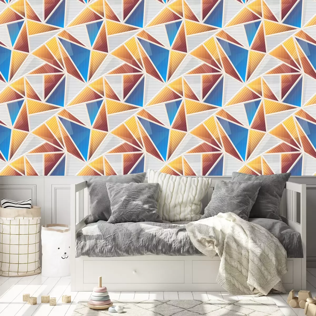 Blauw-roze driehoek dessinHet geometrische behang met een abstract patroon van driehoeken in blauwe, grijze en oranje kleuren is een perfecte toevoeging aan vele interieurs. Het dynamische patroon en de harmonieuze combinatie van kleuren geven de ruimte een moderne en energieke uitstraling. Geometrisch behang past goed in moderne, minimalistische ruimtes die een vleugje distinctie nodig hebben. Hier voegt geometrie structuur en diepte toe aan het interieur. Het abstracte patroon past ook goed bij de industriële stijl, waar ruwe materialen en minimalistische vormen overheersen. Als je een beetje kleur en leven aan zo'n ruimte wilt toevoegen, is dit behang de perfecte oplossing. Geometrische patronen passen ook goed bij de Scandinavische stijl, bekend om zijn lichte kleurenpalet en eenvoudige, geometrische vormen. Blauwe, grijze en oranje tinten kunnen een geweldige aanvulling zijn op de natuurlijke materialen en subtiele accenten in dergelijke ruimtes. Als je op zoek bent naar driehoekig behang dat traditionele interieurs opvrolijkt, zal deze geometrische compositie ook de klus klaren. In klassieke ruimtes met een ingetogen kleurenpalet zal het abstracte patroon een moderne en frisse touch toevoegen. Behang geometrisch kan ook een uitstekende keuze zijn voor kantoorruimtes en creatieve omgevingen, zoals kunststudio's of ontwerpbureaus. Het dynamische patroon en de energieke kleuren kunnen creativiteit en inspiratie stimuleren. De conclusie is duidelijk. Dit is een zeer veelzijdig behang. Het geometrische behang “driehoeken" zal ervoor zorgen dat je interieur een interessant aandachtspunt krijgt voor iedereen die de ruimte betreedt.