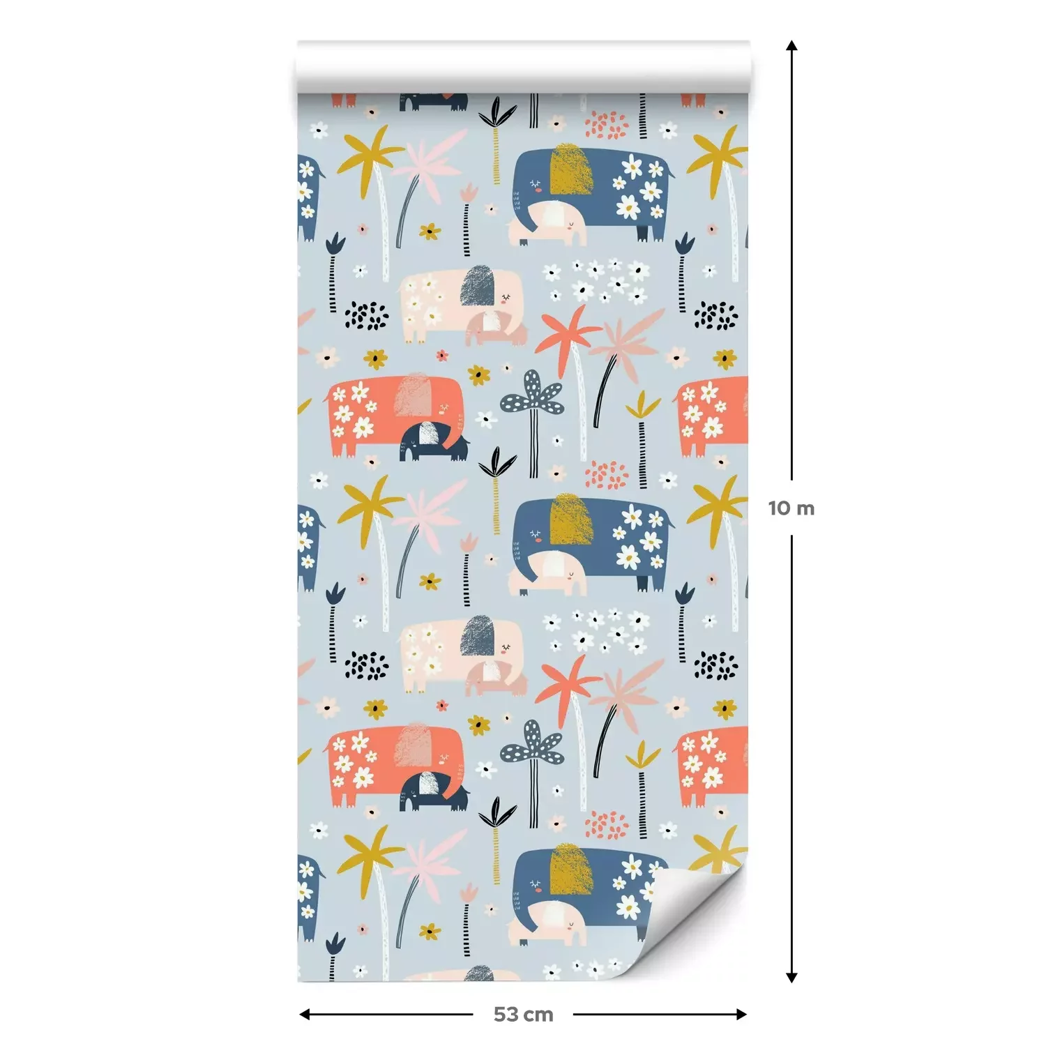 Een standaardrol behang heeft een afmeting van 0,53 m x 10 m, wat voldoende is om ongeveer 5 m² muur te bedekken.