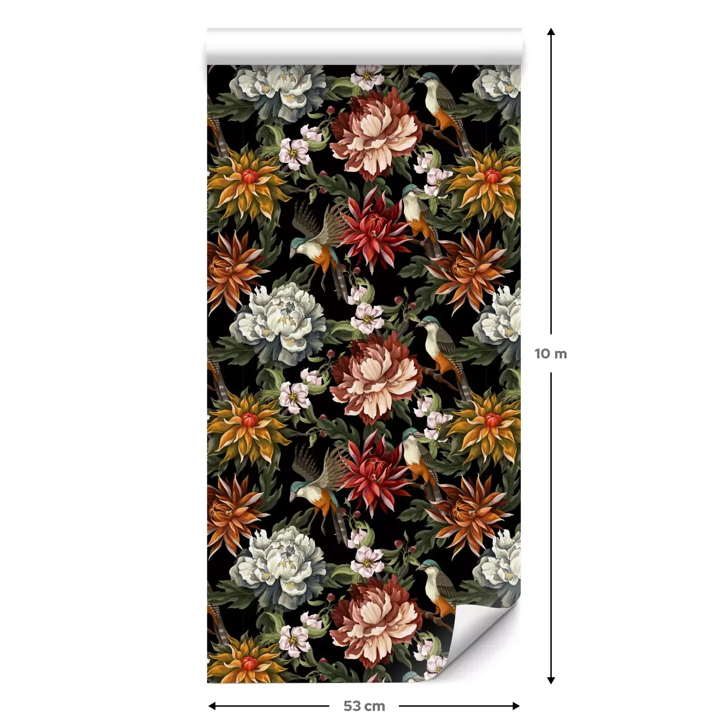 Een standaardrol behang heeft een afmeting van 0,53 m x 10 m, wat voldoende is om ongeveer 5 m² muur te bedekken.