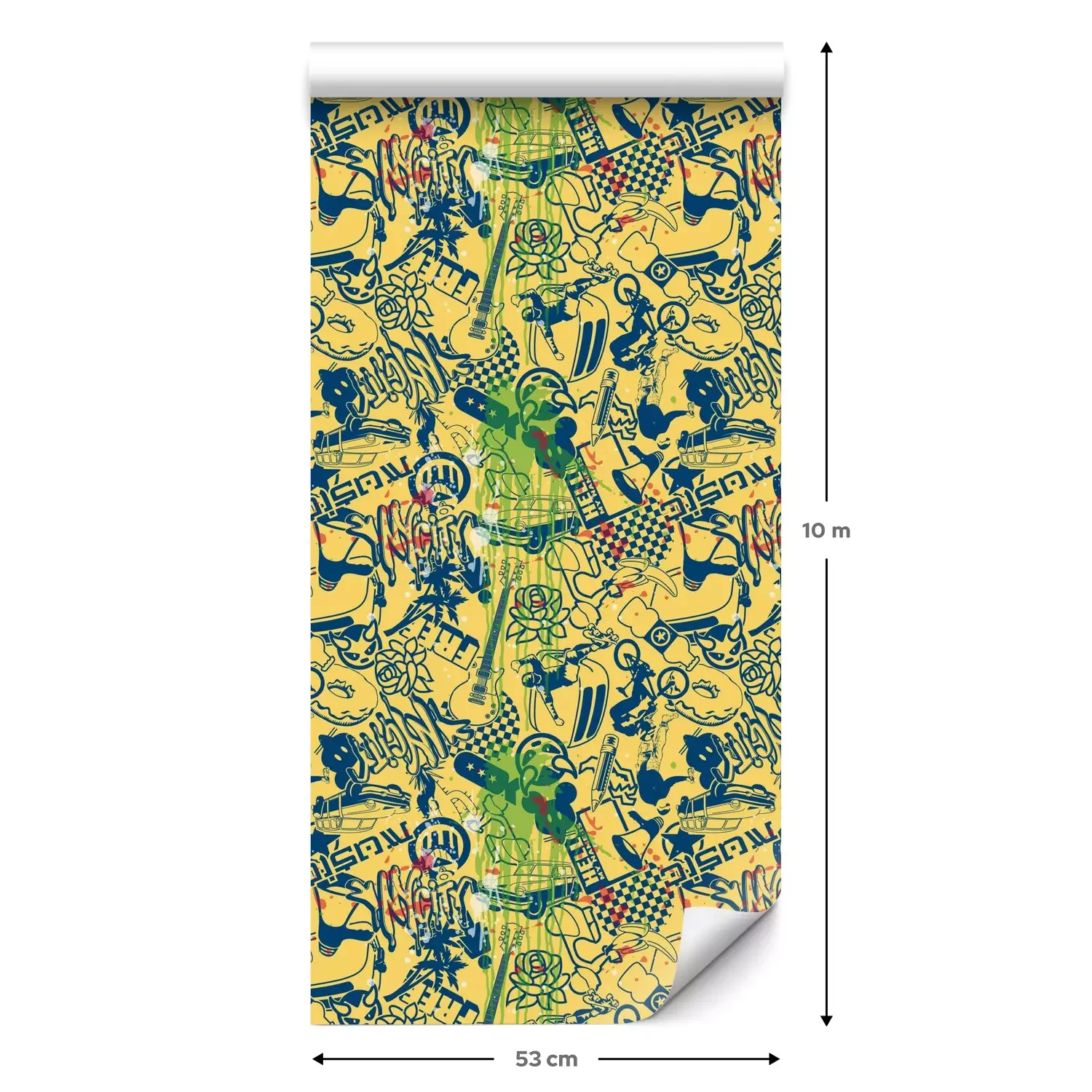Een standaardrol behang heeft een afmeting van 0,53 m x 10 m, wat voldoende is om ongeveer 5 m² muur te bedekken.