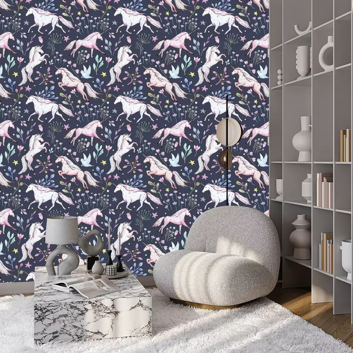 Patroon met roze eenhoornsProbleemloze bezorging verzorgd door vertrouwde vervoerders