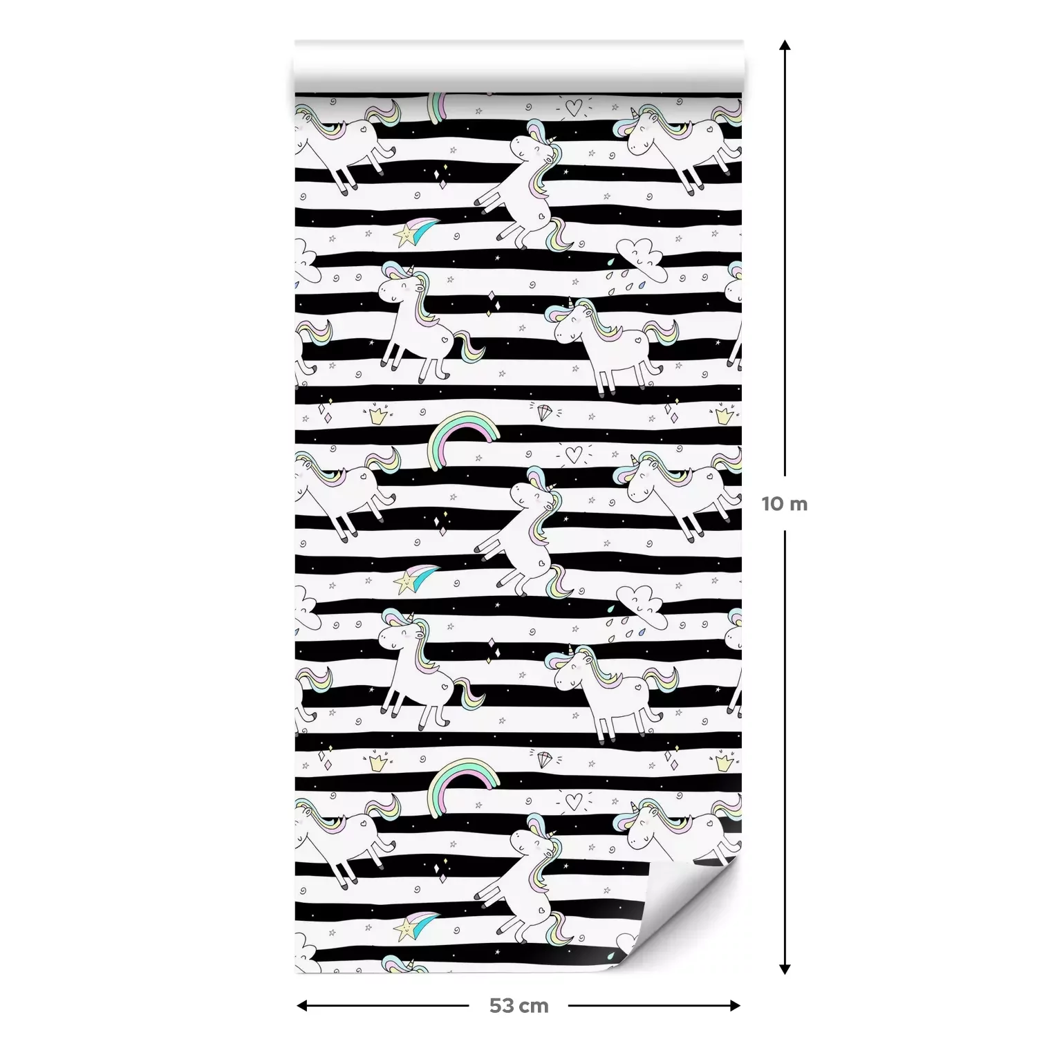 Een standaardrol behang heeft een afmeting van 0,53 m x 10 m, wat voldoende is om ongeveer 5 m² muur te bedekken.