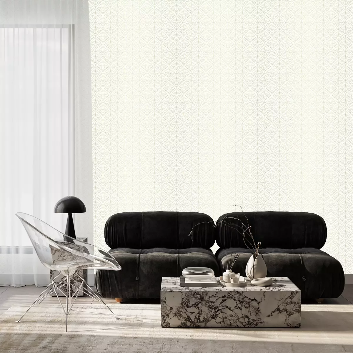 Schelpen in art decoDit minimalistisch behang met een art deco-stijl en een licht kleurenpalet is een buitengewoon decoratief element. Het kenmerkende ontwerp met slanke, gele palmbomen op een witte achtergrond voegt een vleugje glamour en elegantie toe aan de ruimte. Minimalistisch art deco-behang gaat goed samen met gouden accenten, die hun unieke karakter benadrukken. Tegelijkertijd kunnen ze, dankzij hun eenvoud, ook interessante aanvullingen zijn in een minimalistisch interieur of dienen als contrast in donkere arrangementen. Het minimalistische art deco-behang zal zeker het beste passen in kamers waar zijn unieke charme wordt benadrukt. Het zal vooral perfect passen op de centrale muur van de woonkamer, naast de eettafel in de eetkamer, of achter het hoofdeinde van het bed in de slaapkamer. Dankzij zijn elegantie zal het behang met patroon een uitstekende achtergrond vormen voor bijvoorbeeld moderne meubels met zwarte messing poten, typerend voor een industriële sfeer, en diverse accessoires die talloze inrichtingsmogelijkheden bieden. Minimalistisch behang is veelzijdig en ons gepresenteerde behang is hiervan het ware bewijs. Het minimalistische art deco-behang zal harmonieus staan in glamour-, vintage- en moderne interieurs. Glamoureuze interieurs zullen zeker de elegantie ervan naar voren brengen, vooral als het wordt gecombineerd met meubels en accessoires in goudkleur. Vintage interieurs met art deco-elementen zullen een uitstekende achtergrond vormen voor dit patroon behang, waarbij het retrokarakter ervan wordt benadrukt. In moderne interieurs zal het patroon behang een interessant contrast vormen met minimalistische lijnen en neutrale kleuren, waardoor ze een unieke uitstraling krijgen. Bij het selecteren van accessoires voor dit behang met patroon is het de moeite waard om balans en matigheid in acht te nemen. Gouden of messing accenten passen perfect, waardoor de ruimte glans en luxe krijgt. Overweeg ook het toevoegen van enkele zwarte of grafietkleurige elementen, die een contrast zullen vormen met het heldere minimalistische patroon behang en diepte aan de inrichting zullen toevoegen. Textiel, zoals kussens of gordijnen, in een eenvoudige, neutrale kleur zullen een perfecte aanvulling zijn op de consistente esthetiek. Dit behang patroon is een synoniem voor tijdloosheid, blijvende elegantie en goede smaak.