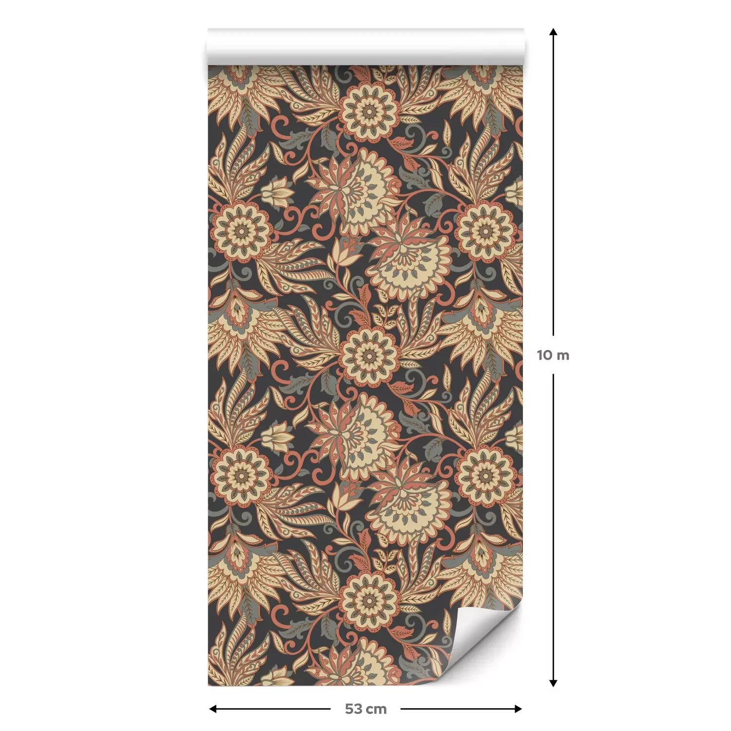 Een standaardrol behang heeft een afmeting van 0,53 m x 10 m, wat voldoende is om ongeveer 5 m² muur te bedekken.