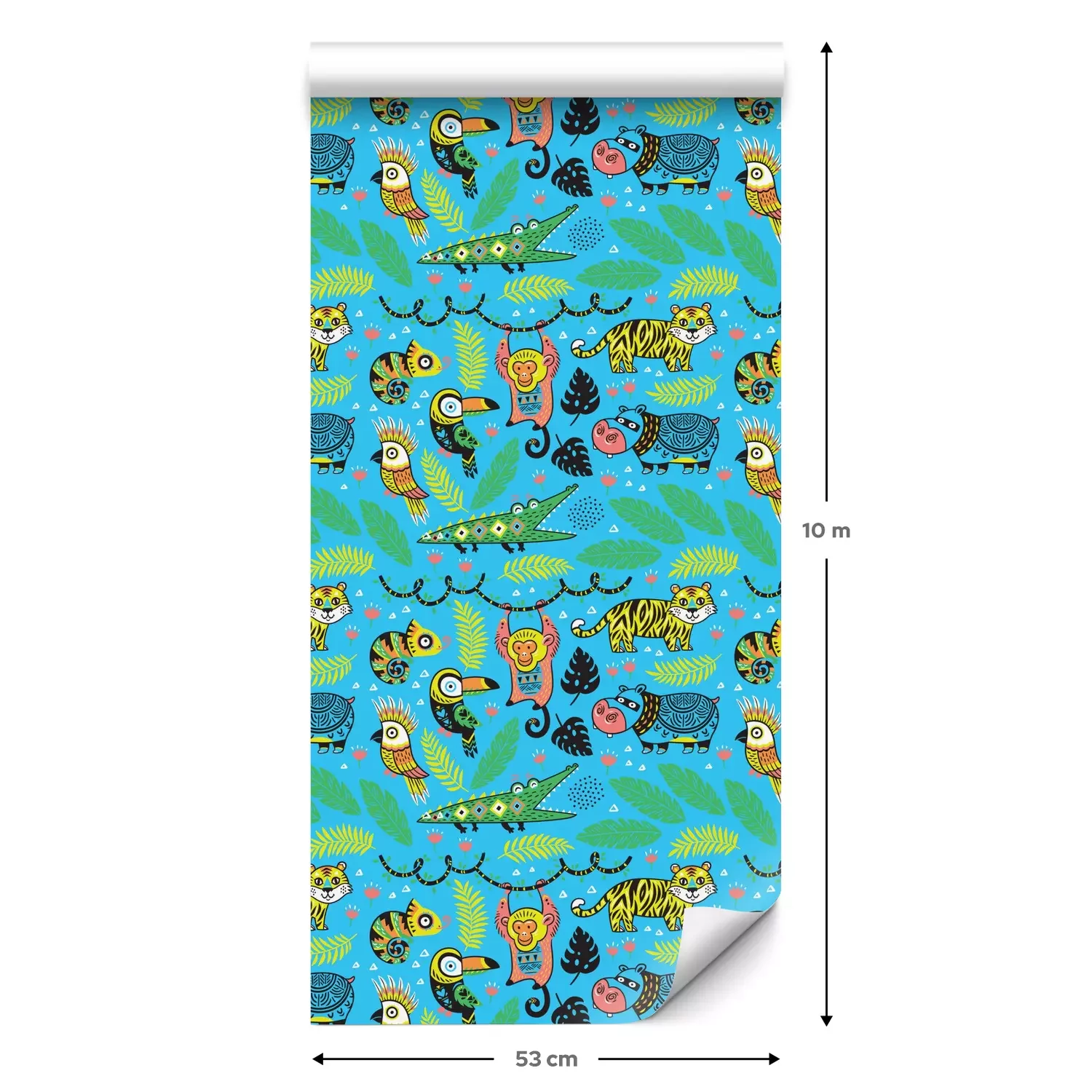 Een standaardrol behang heeft een afmeting van 0,53 m x 10 m, wat voldoende is om ongeveer 5 m² muur te bedekken.