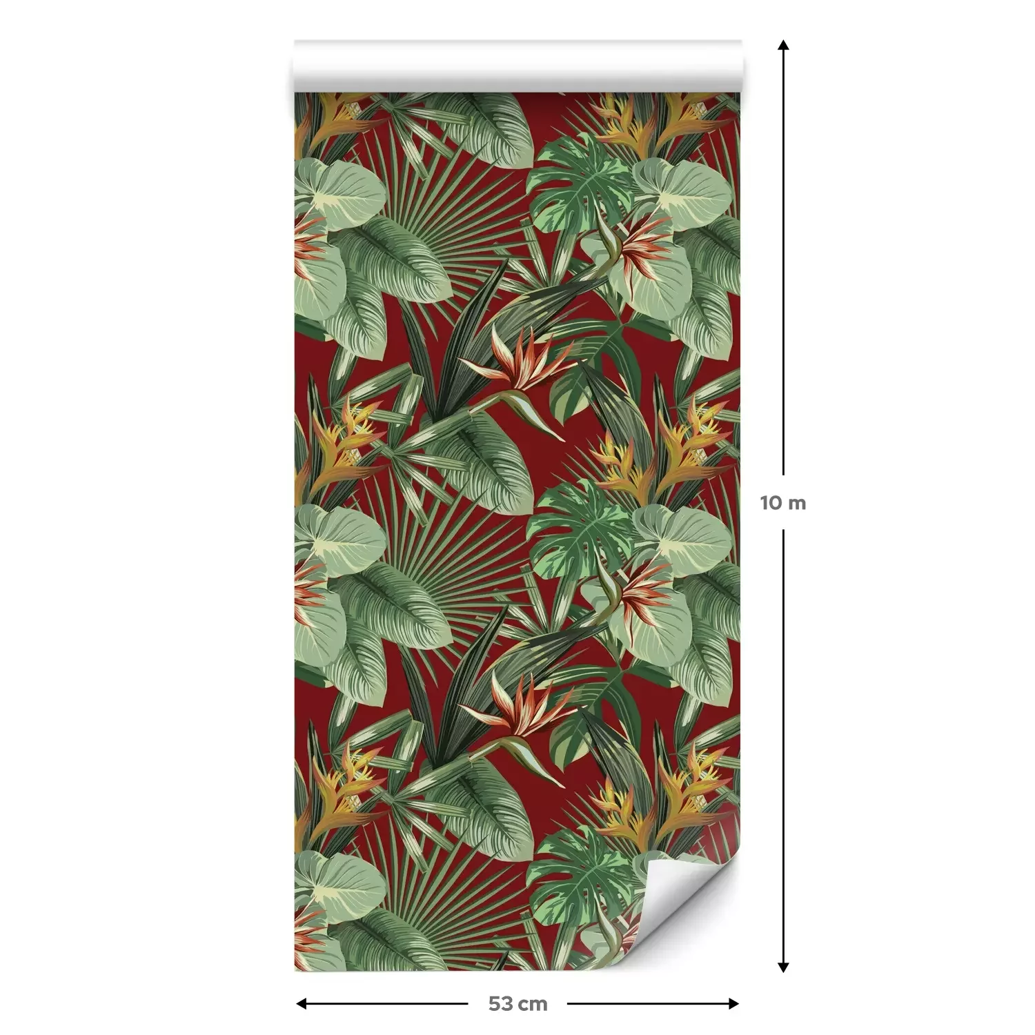 Een standaardrol behang heeft een afmeting van 0,53 m x 10 m, wat voldoende is om ongeveer 5 m² muur te bedekken.