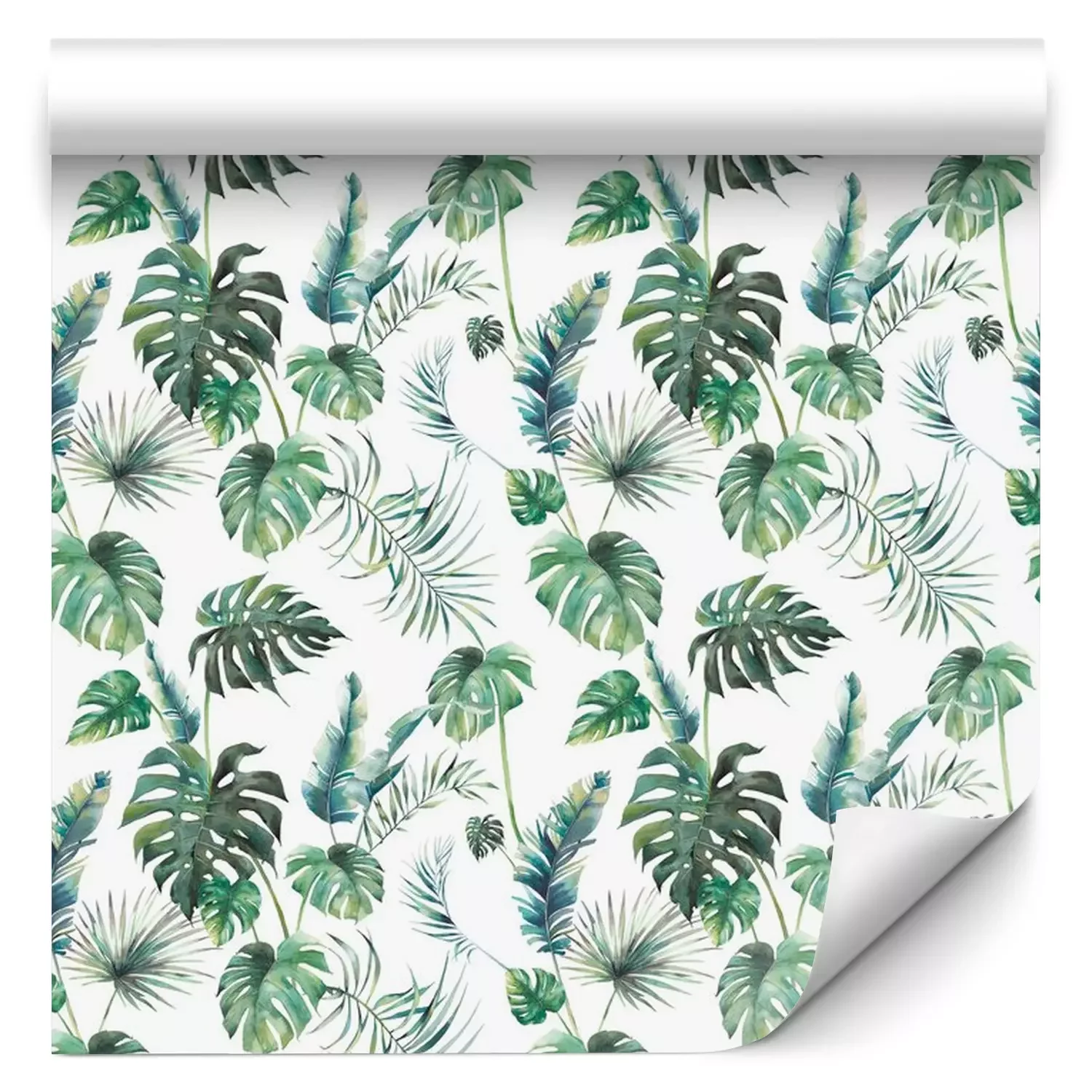 Monstera-bladeren geschilderd met waterverf.Fotobehang