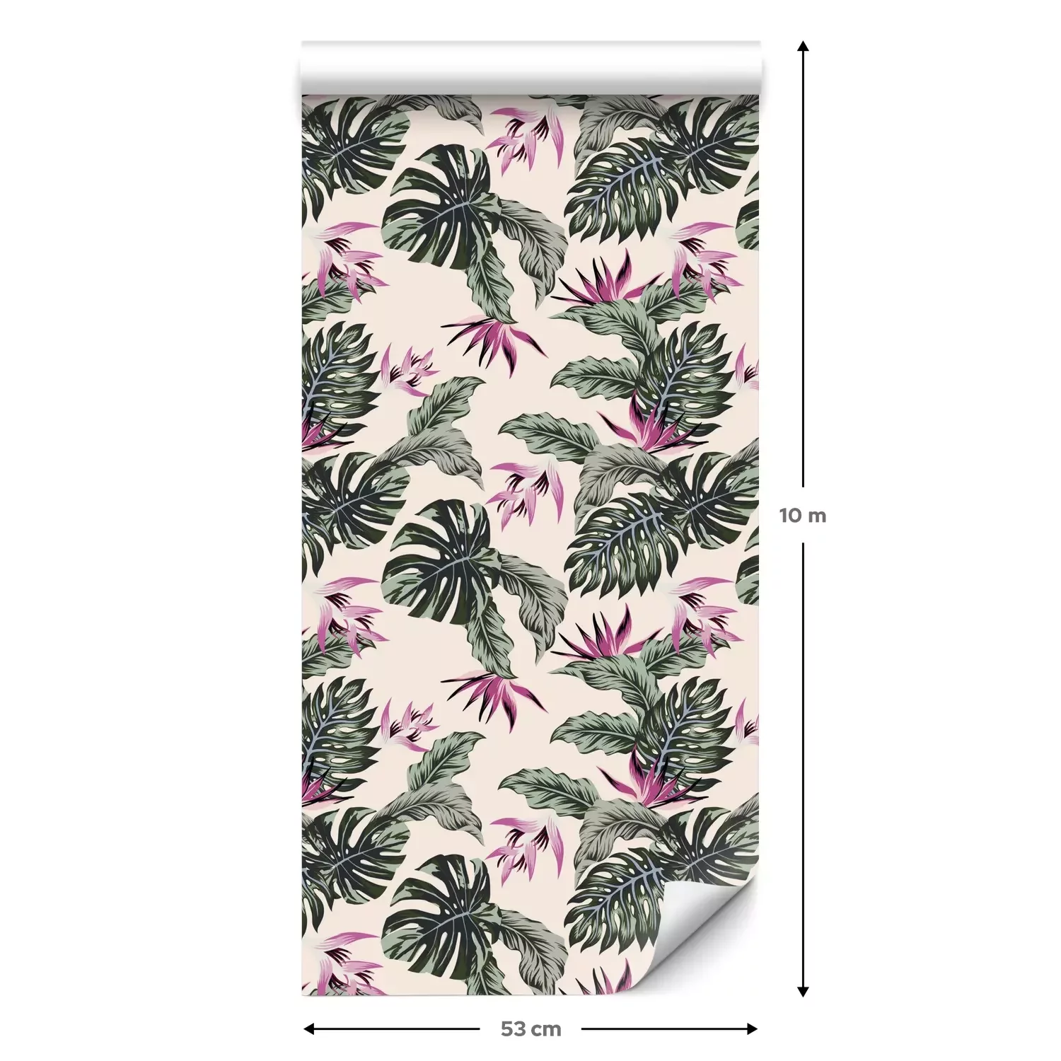 Een standaardrol behang heeft een afmeting van 0,53 m x 10 m, wat voldoende is om ongeveer 5 m² muur te bedekken.