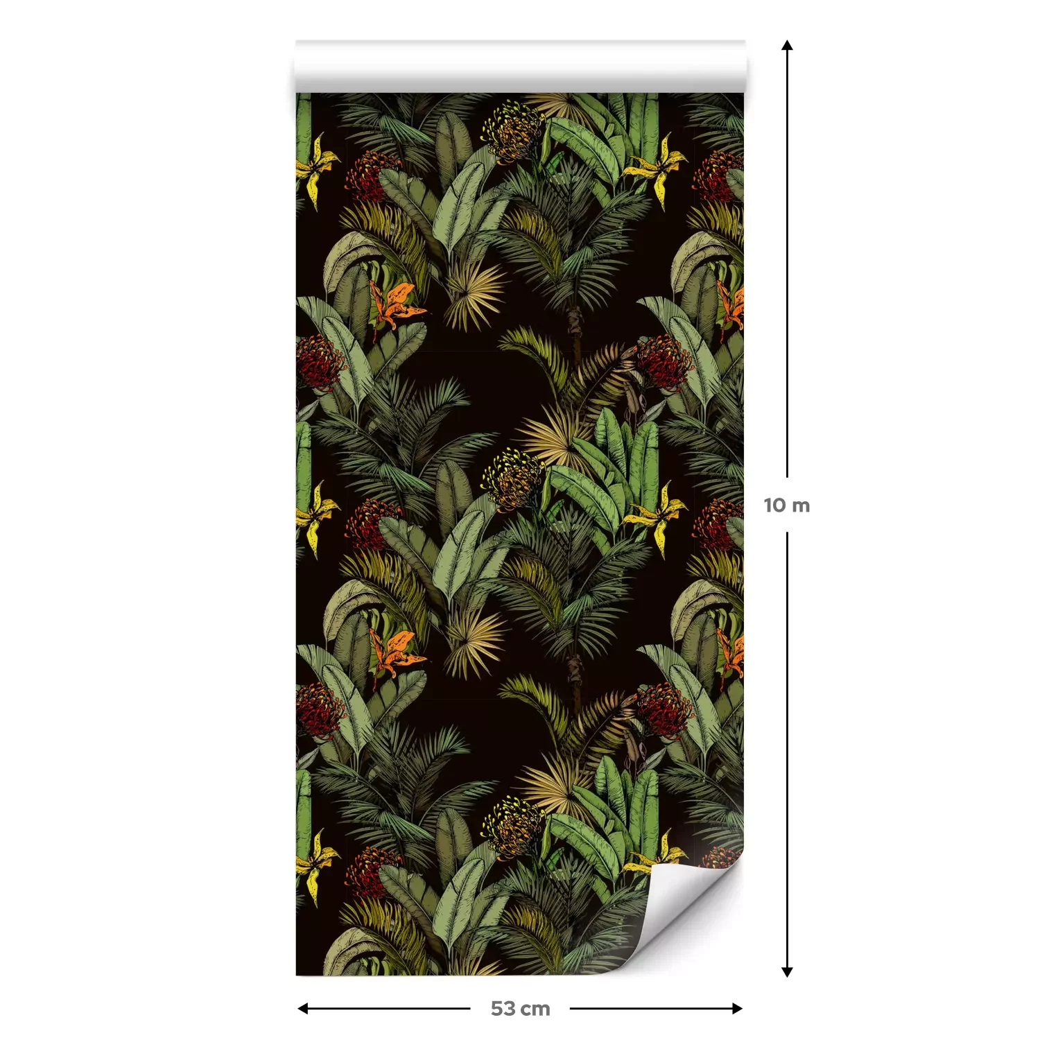 Een standaardrol behang heeft een afmeting van 0,53 m x 10 m, wat voldoende is om ongeveer 5 m² muur te bedekken.