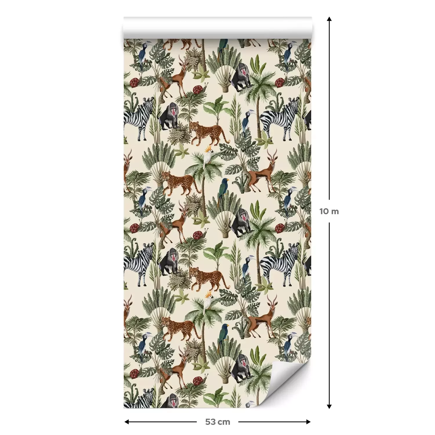 Een standaardrol behang heeft een afmeting van 0,53 m x 10 m, wat voldoende is om ongeveer 5 m² muur te bedekken.