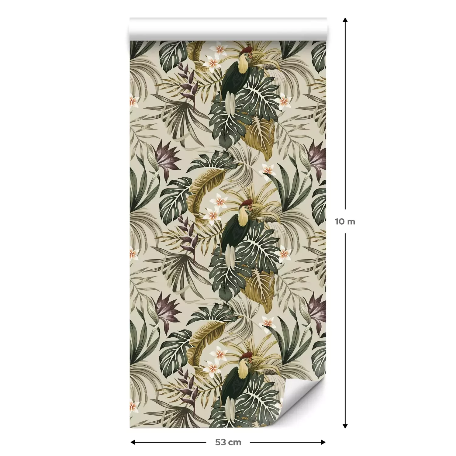 Een standaardrol behang heeft een afmeting van 0,53 m x 10 m, wat voldoende is om ongeveer 5 m² muur te bedekken.
