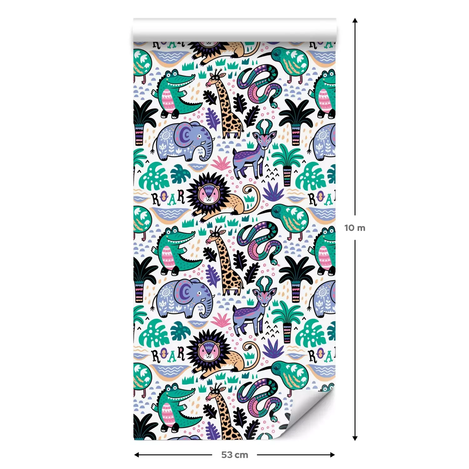 Een standaardrol behang heeft een afmeting van 0,53 m x 10 m, wat voldoende is om ongeveer 5 m² muur te bedekken.